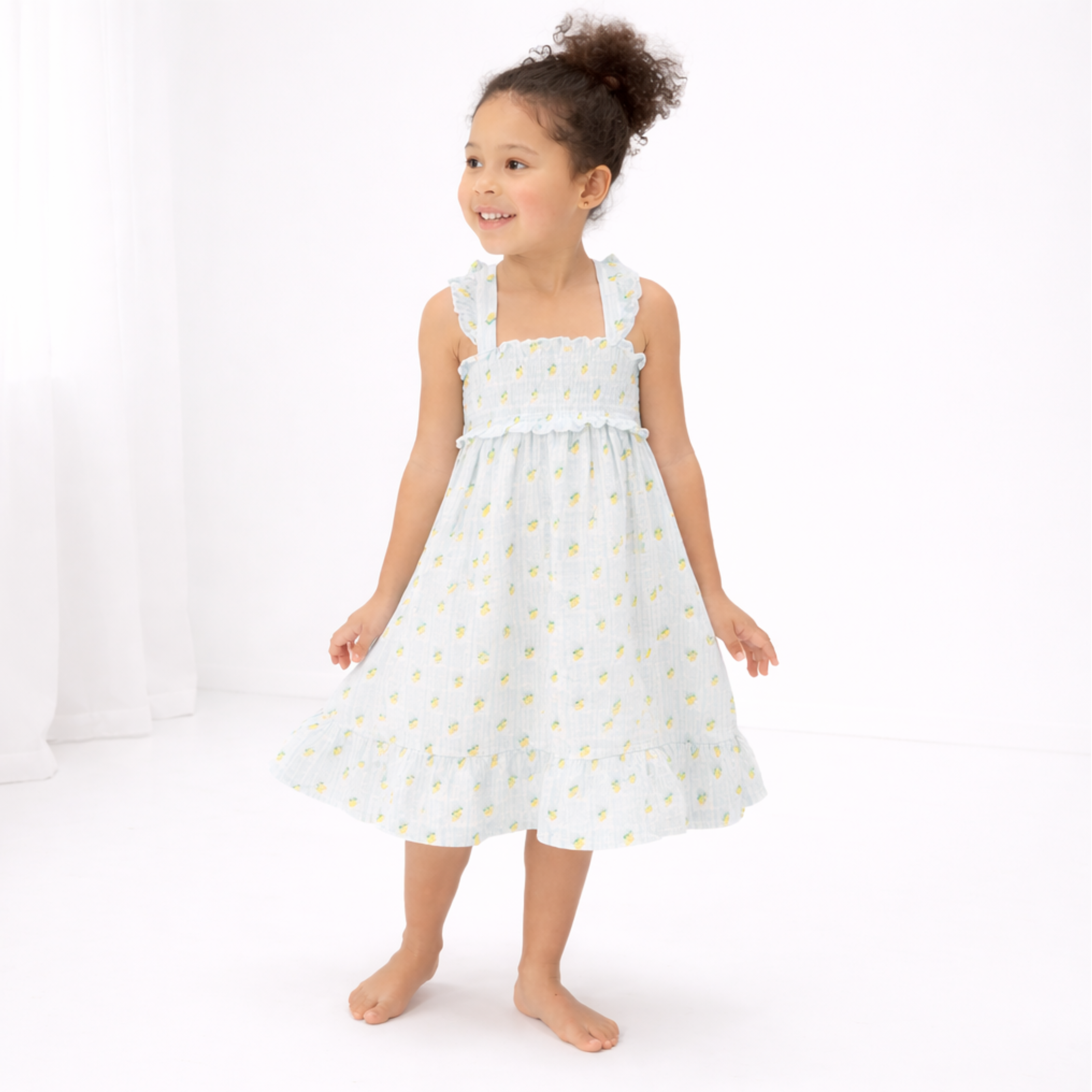 Sweet & Stylish: Organic Muslin Smocked Ruffle Sundress & Bloomer