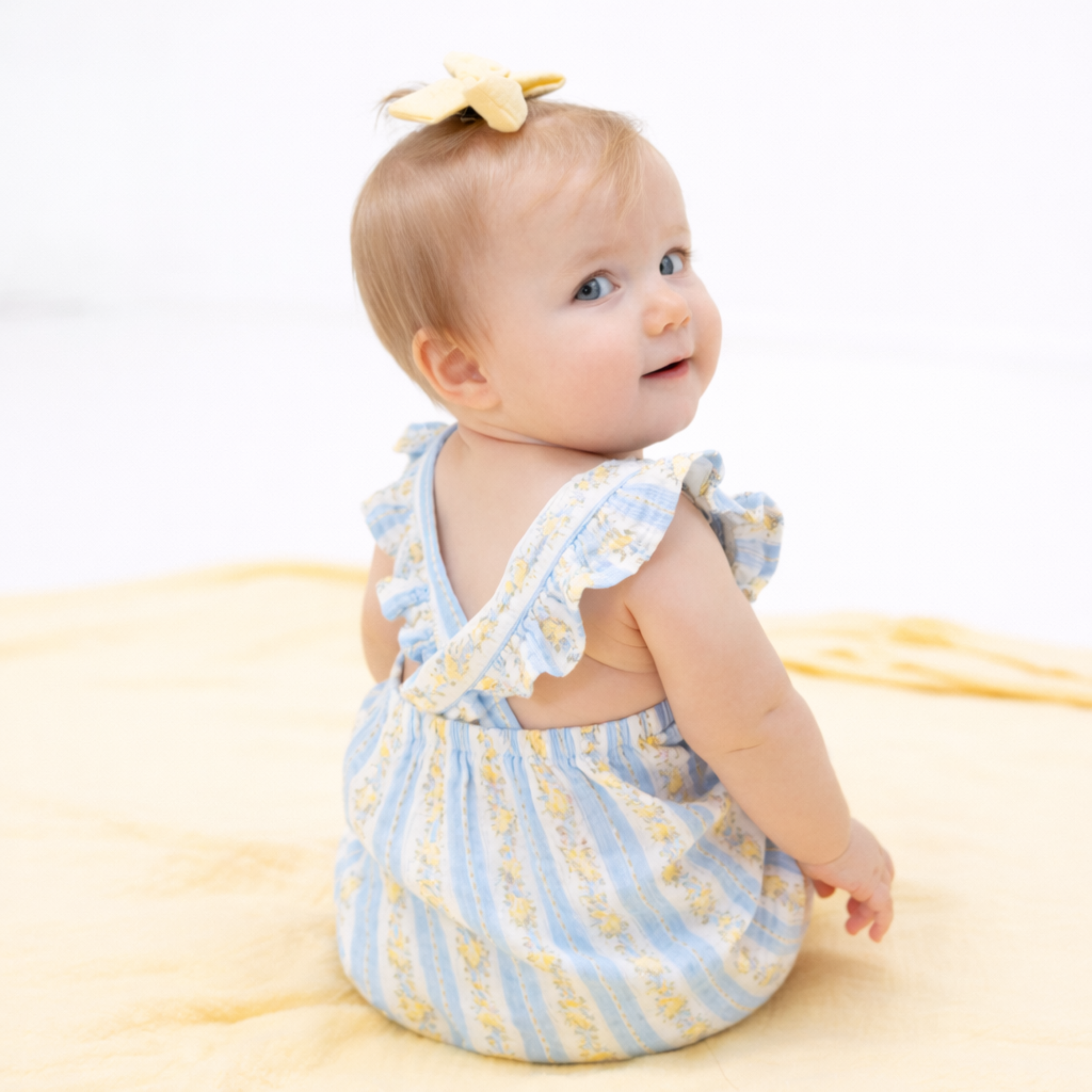 Let your little sunshine shine in this darling Organic Muslin Ruffle Sunsuit—perfect for twirls, giggles, and making summer memories!