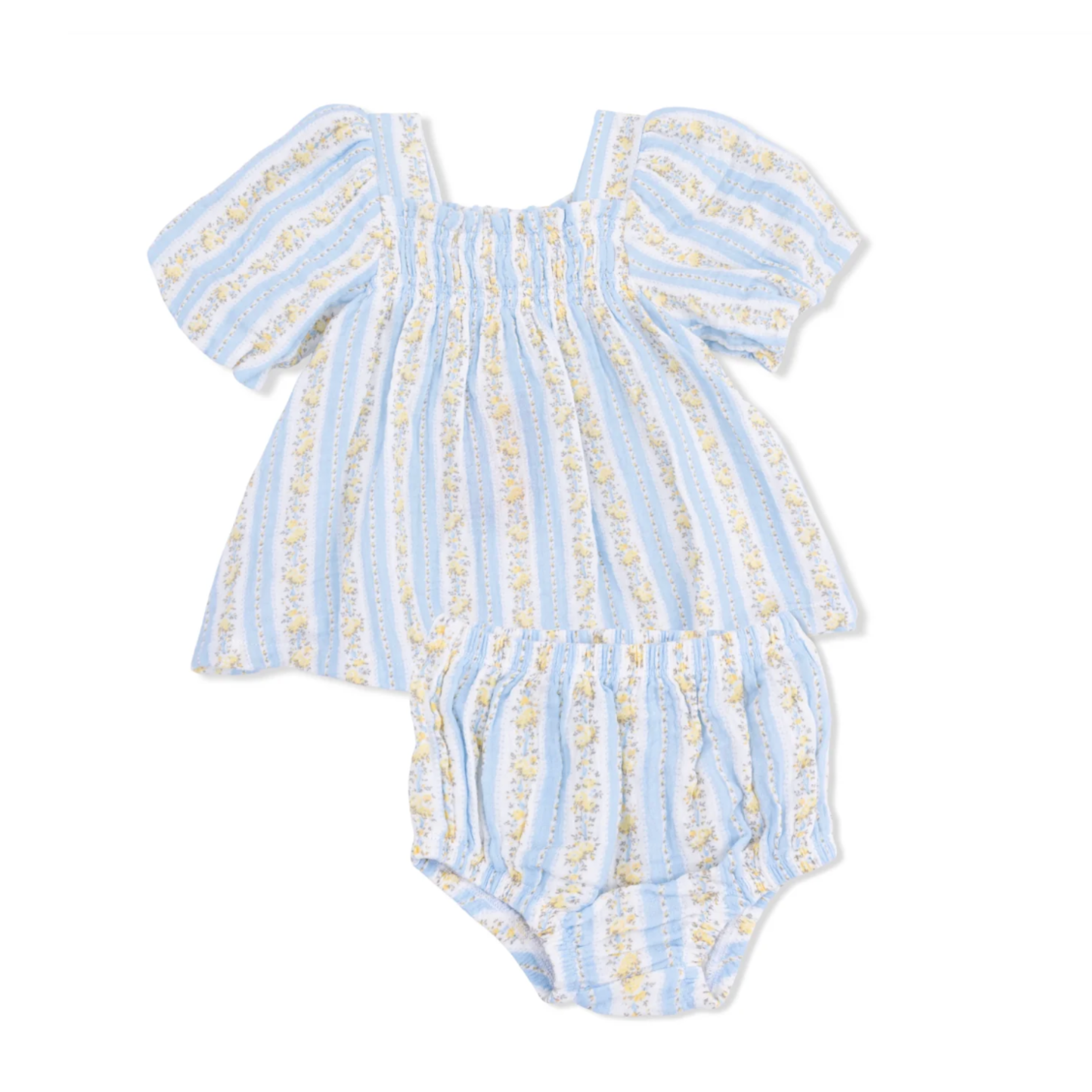 Our Puff Sleeve Dress and Bloomer, made from soft, breathable Organic Cotton Muslin, is the perfect outfit for everyday adventures or special occasions. With delicate smocking across the chest and classic puff sleeves, this set combines timeless style with all-day comfort. The matching bloomer completes the look while keeping things practical.