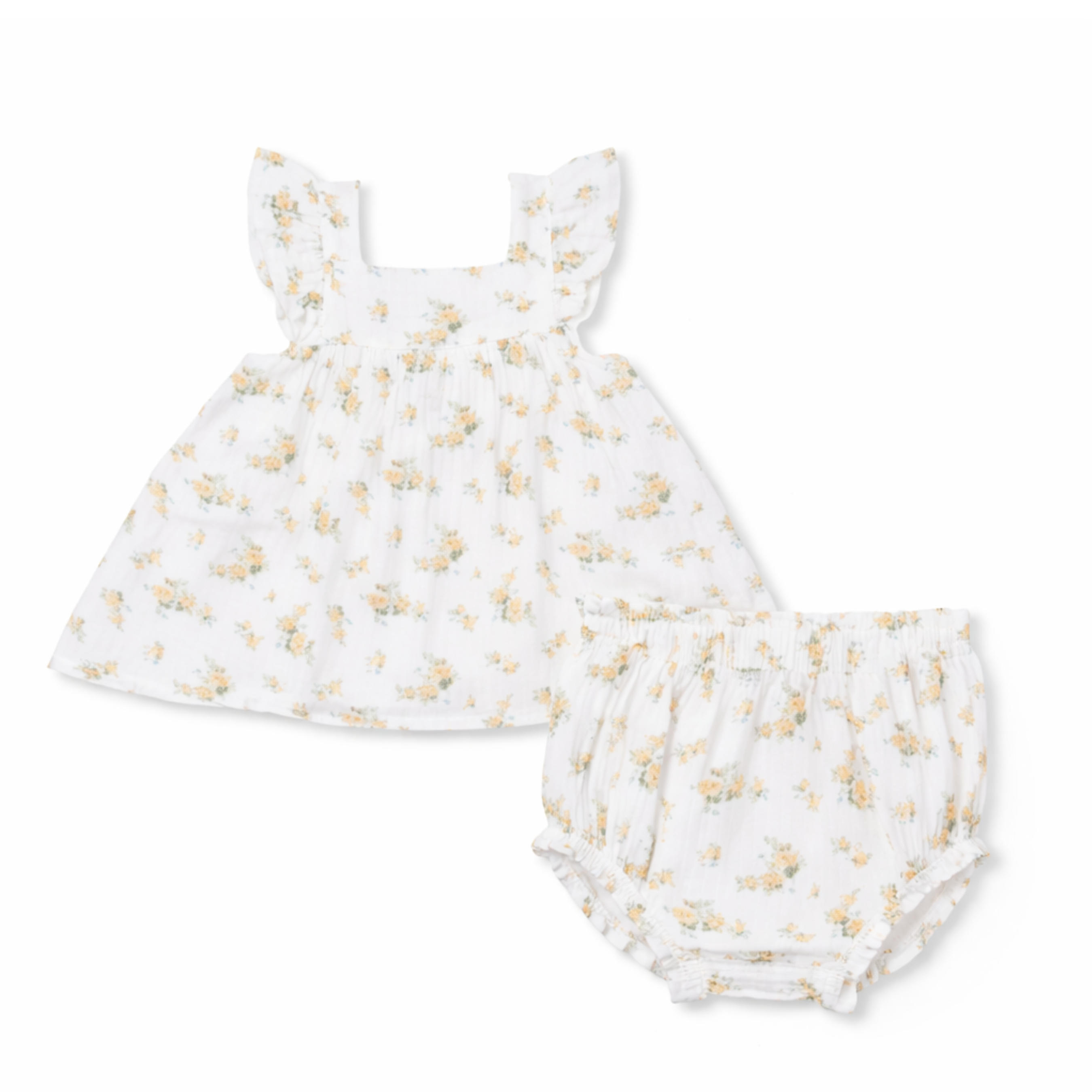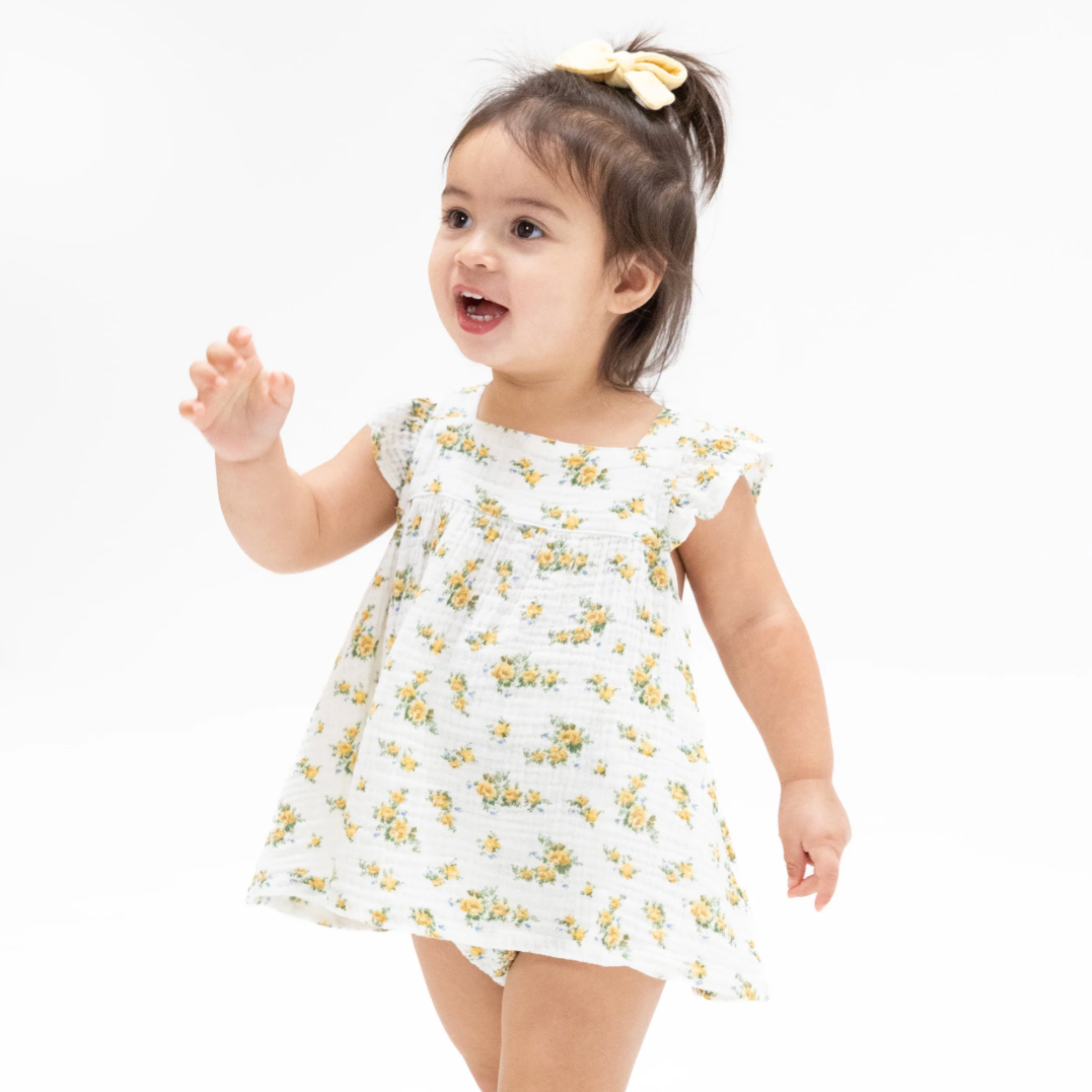 This Organic Muslin Pinafore with High Waisted Bloomer is perfect for any baby who loves to look cute and feel comfy!
