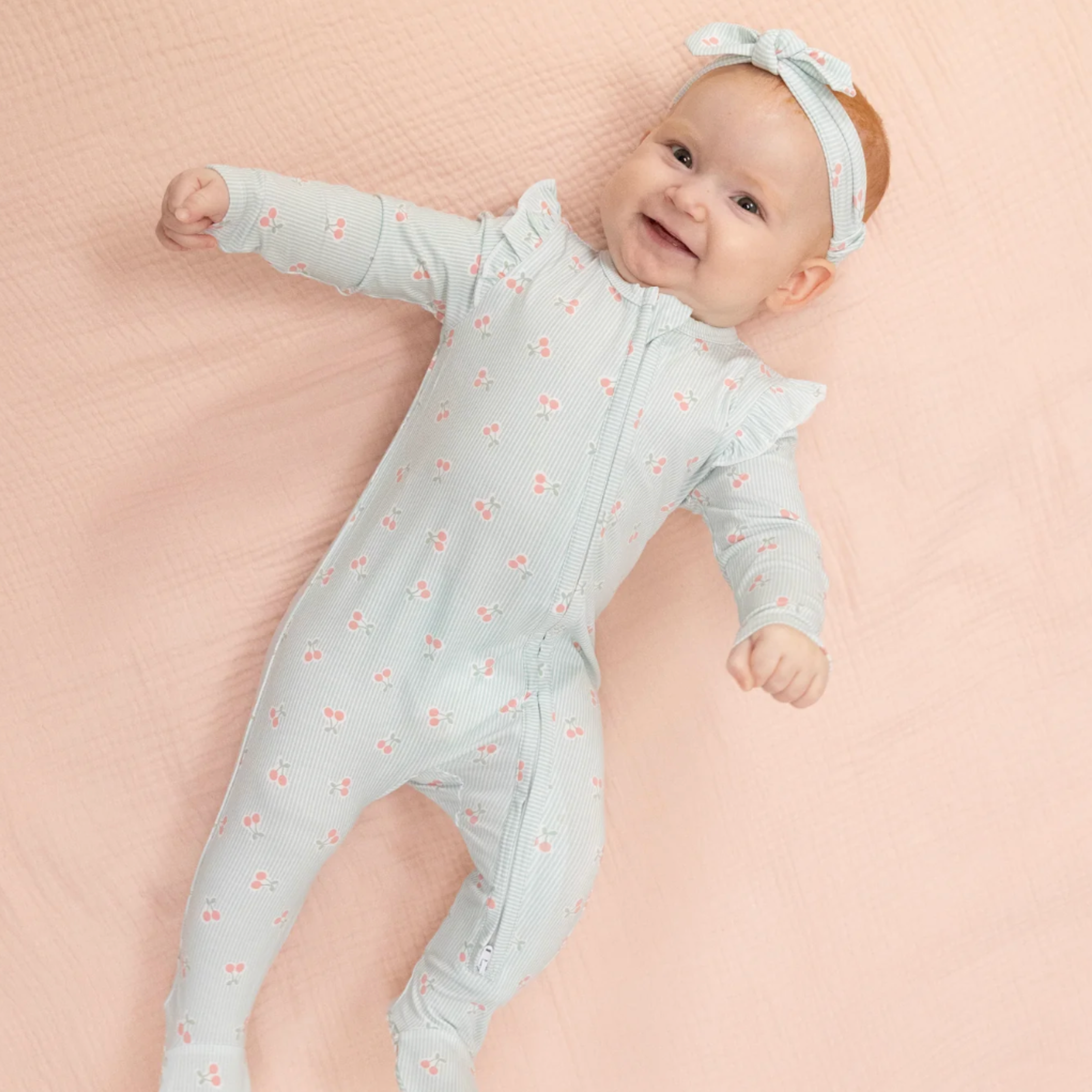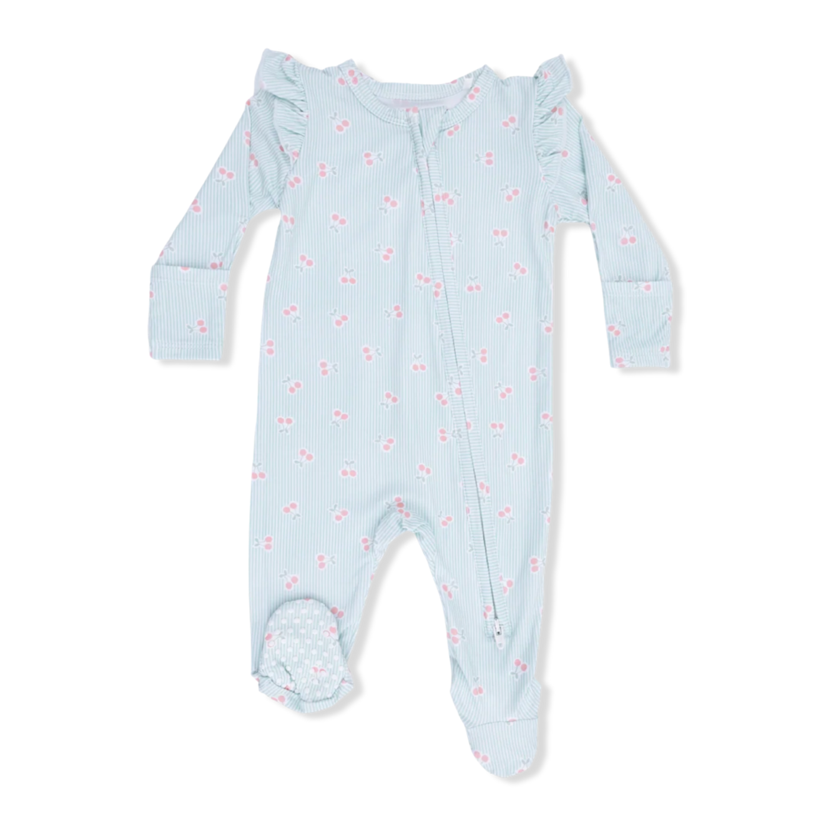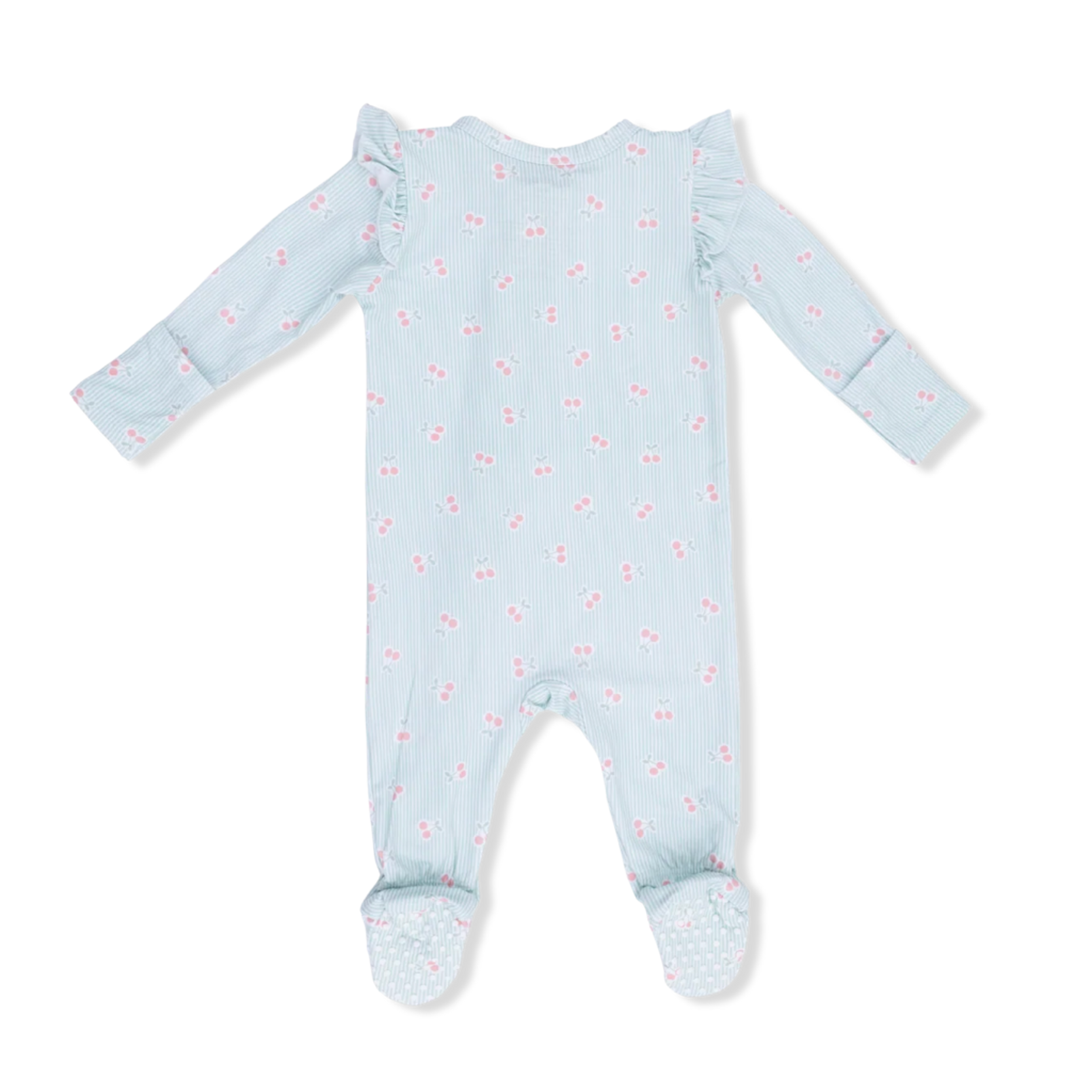 Tiny Cherries Stripe 2 Way Zipper Footie Sleeper