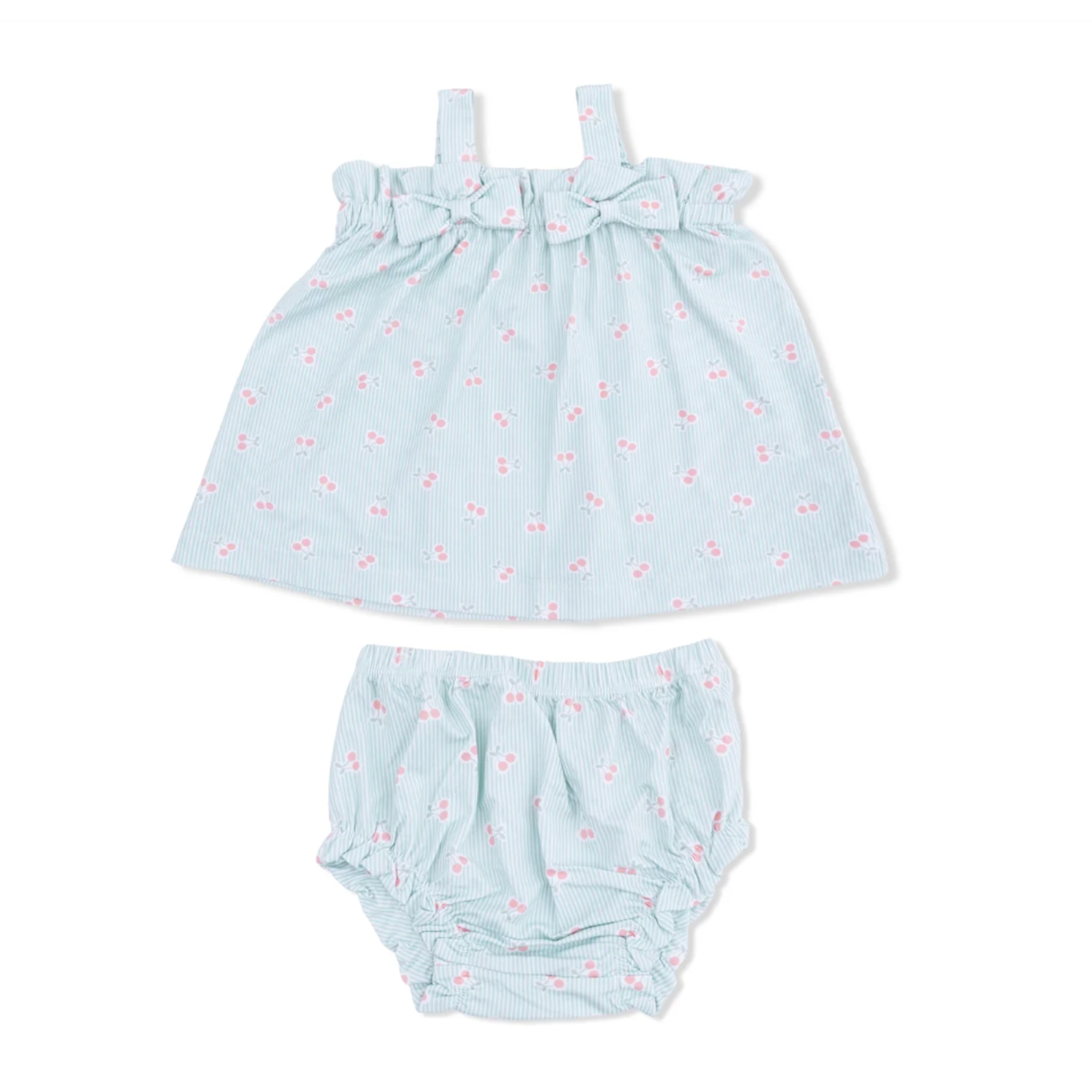 Tiny Cherries Stripe Top with Bows & Ruffle Leg Bloomer