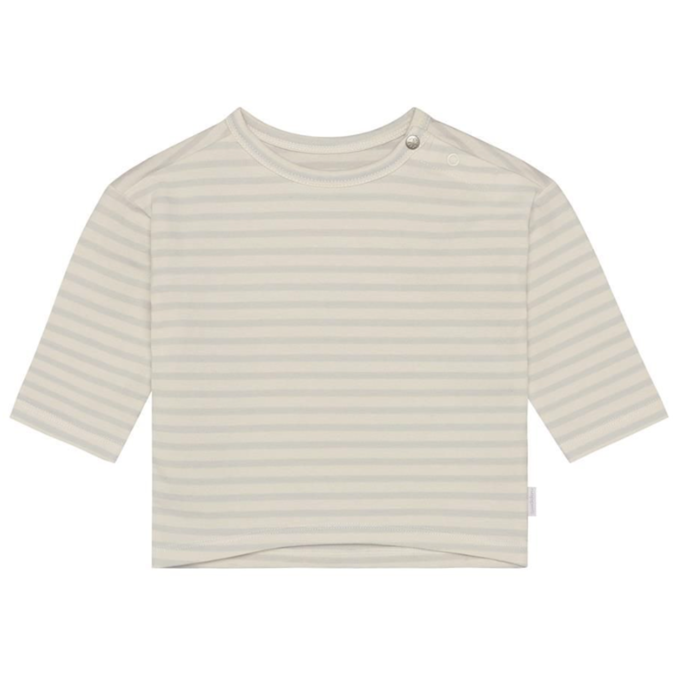 This Noppies Baby long-sleeve tee is a must-have basic for newborns. Made from soft stretch organic cotton with an extra gentle inside for maximum comfort. Press studs on the shoulder make dressing easy. With a round neckline and long sleeves for a snug and comfy fit. Perfect for everyday wear and easy to mix and match. GOTS certified (CERES-0366), ethically and sustainably produced. A great layering piece for any season – wear it solo or under a cardigan or sweater.