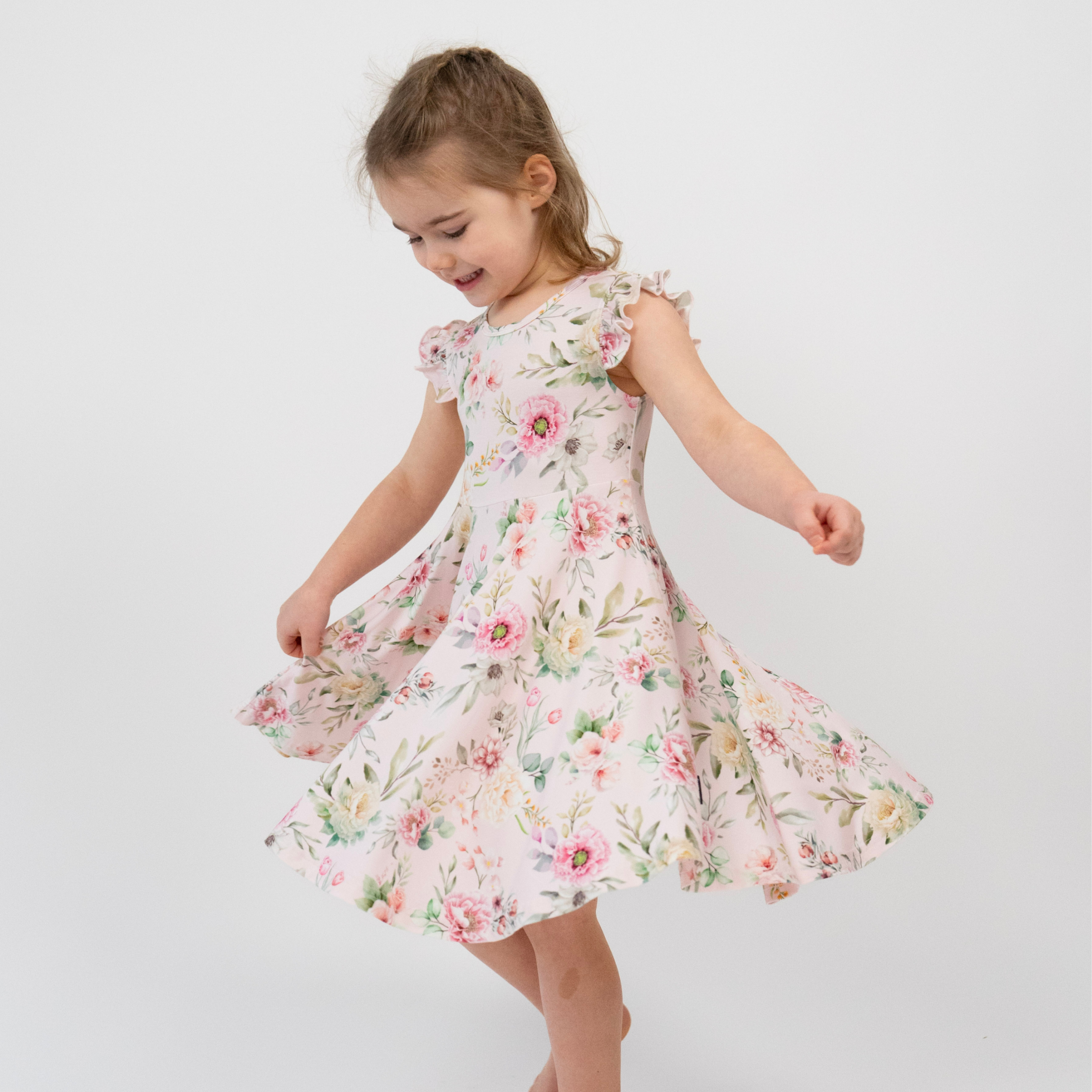 Floral Bliss Ruffled Sleeve Twirl Dress