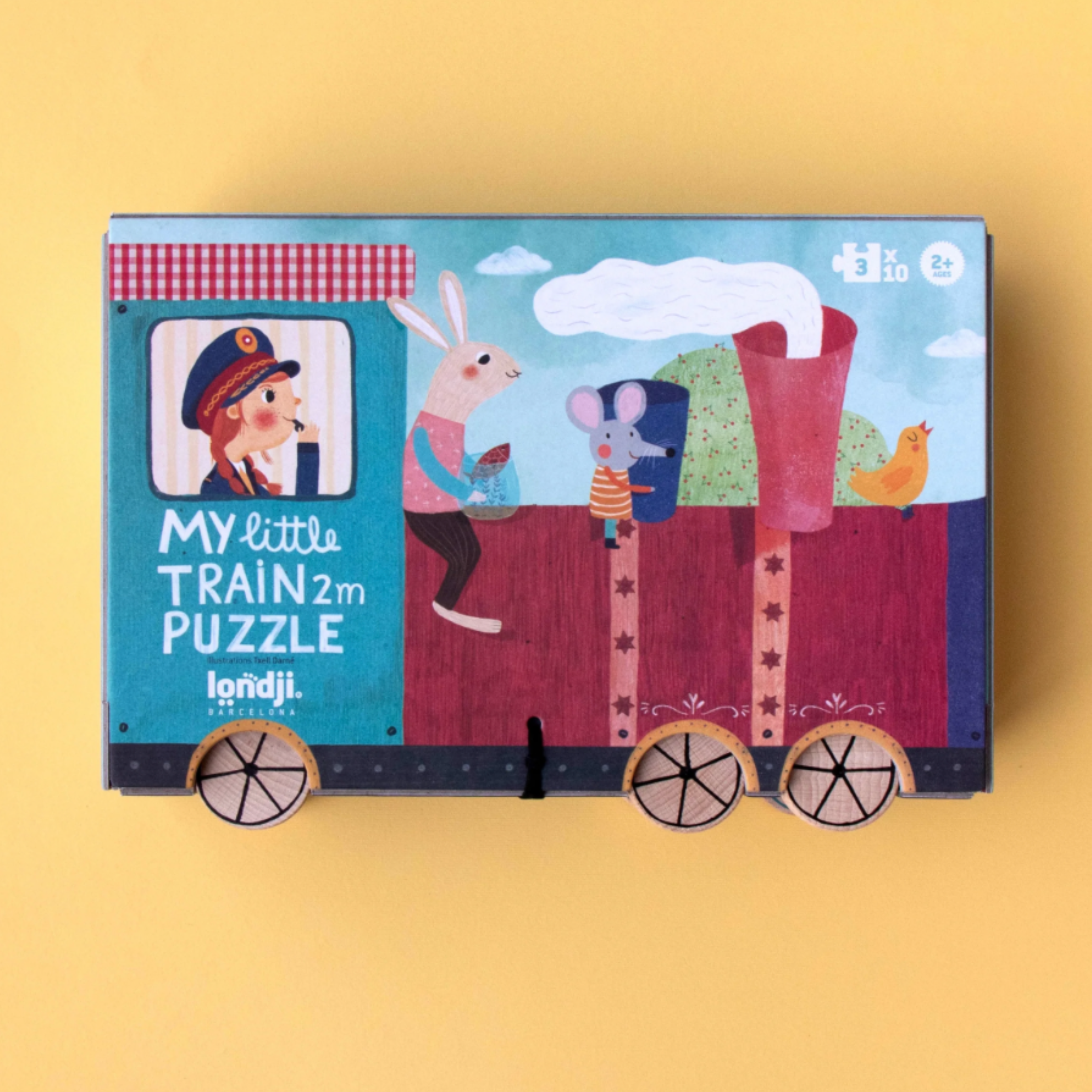 Illustrations by Txell Darné. Puzzle Material: Recycled cardboard and paper. Packaged in sturdy cardboard box. Puzzle Size 200 x 15 cm. Box Size 28.6 x 18.8 x 8 cm. Suited to ages 2+.