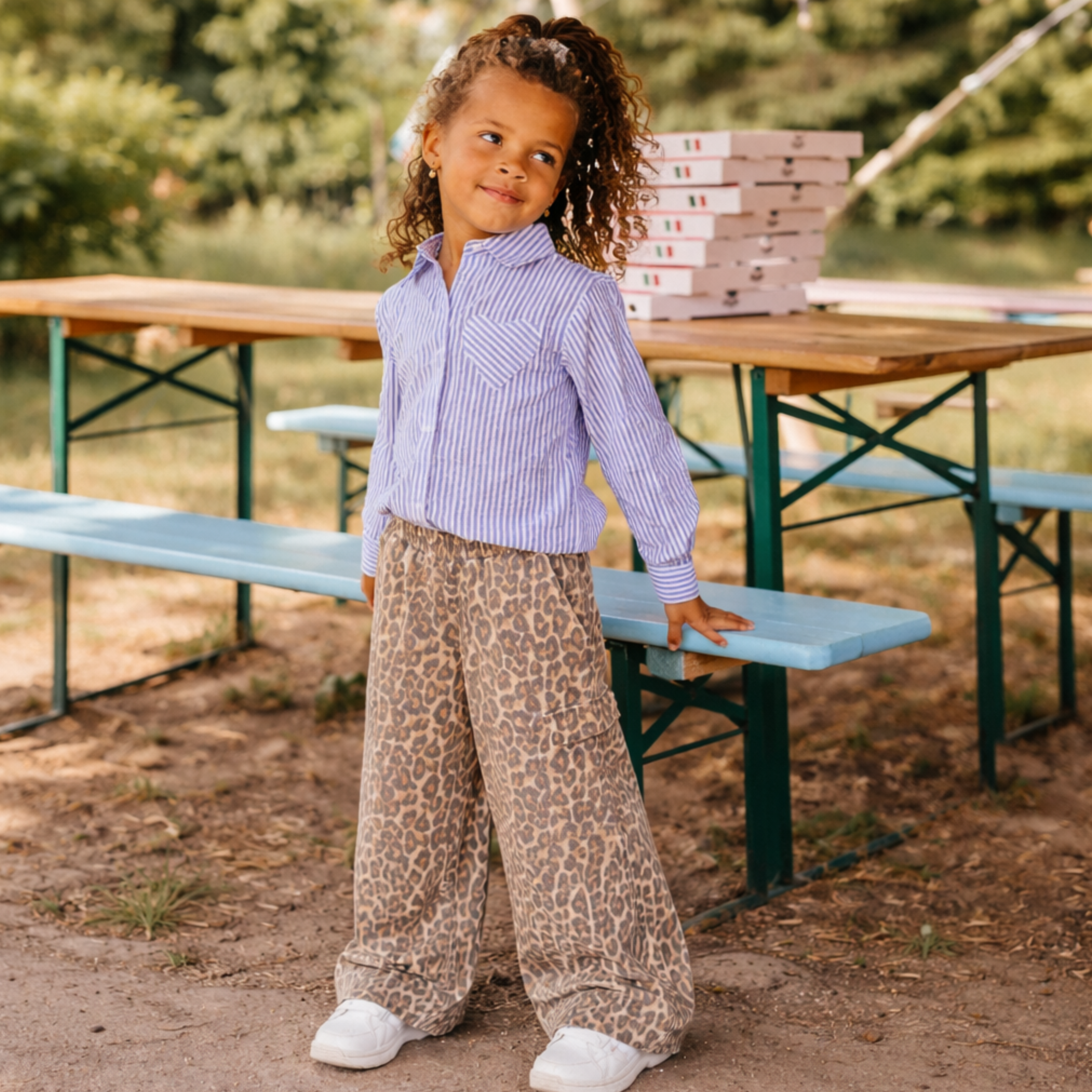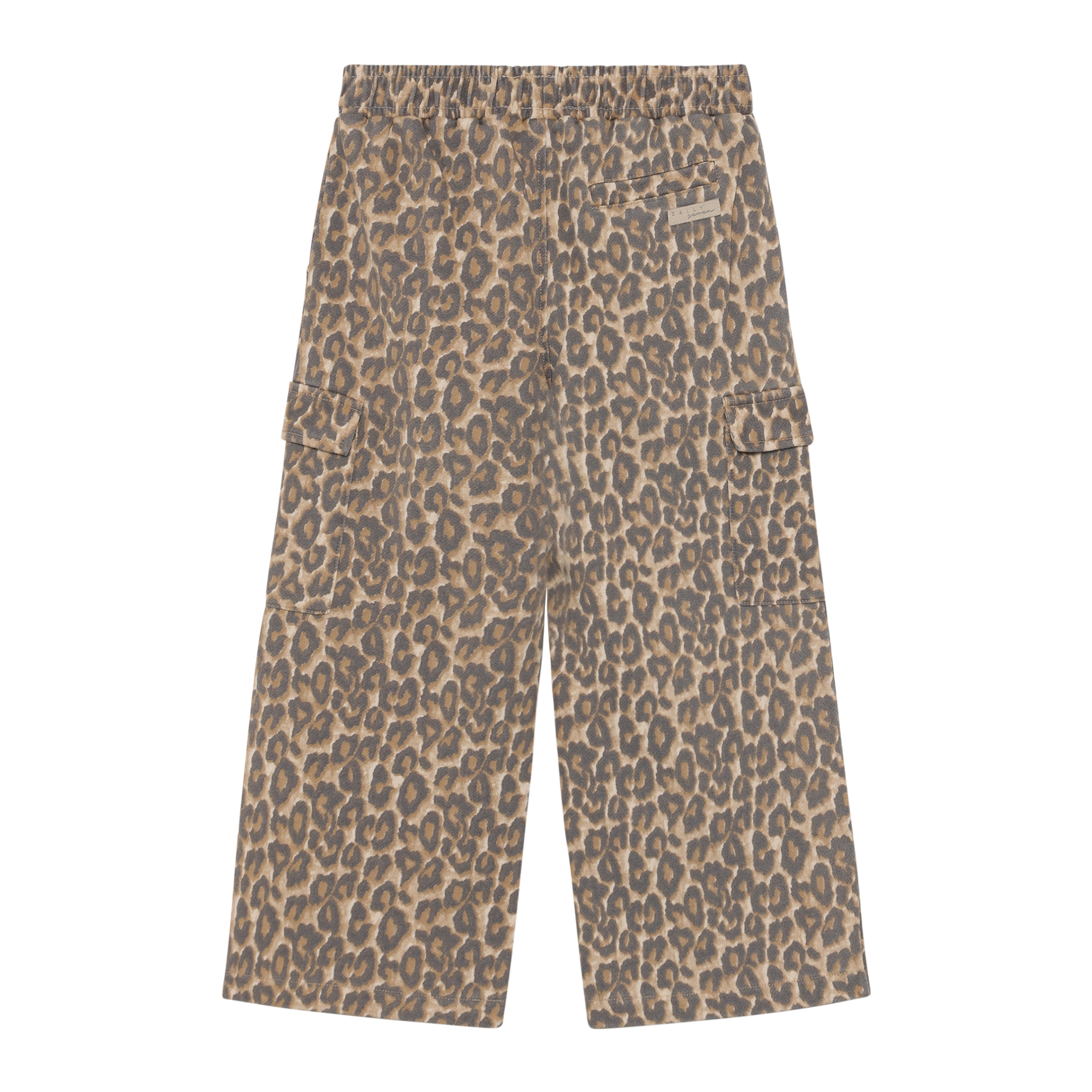 Roam free in these wide cargo pants in soft Sandshell, featuring a bold leopard print that adds playful style to everyday adventures. Designed with practical side pockets and leg pockets perfect for storing little treasures, these pants combine comfort with function. Crafted from 100% cotton for breathability and softness against delicate skin.