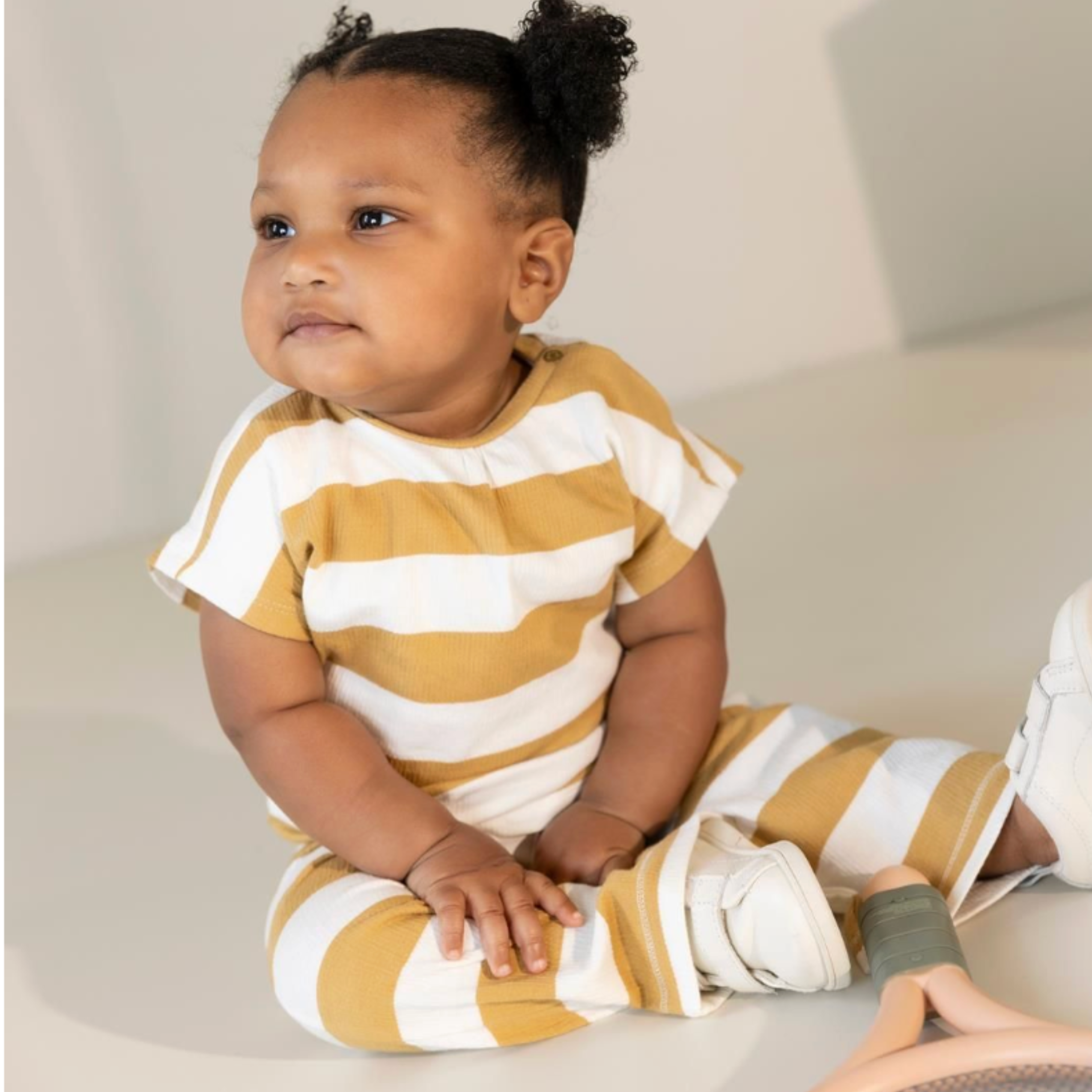 These striped pants with straight legs for baby girls from Noppies Baby have a relaxed look and feel soft thanks to the crinkle jersey with stretch. Made mostly from organic cotton and GOTS-certified (CERES-0366), they’re a smart, comfy pick. The straight legs and comfort fit offer plenty of freedom to move. The stripe pattern adds a cheerful, summery touch. No closure makes dressing quick and easy. Perfect for relaxed days out or playtime at home – pair effortlessly with her favorite tops.