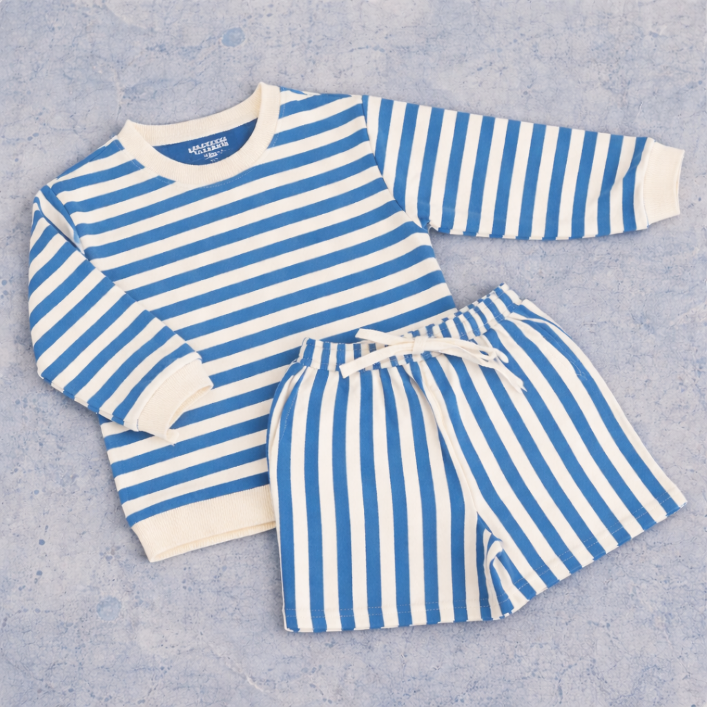 Your Little Babe will be spreading the love in their striped blue Classic Crew!
