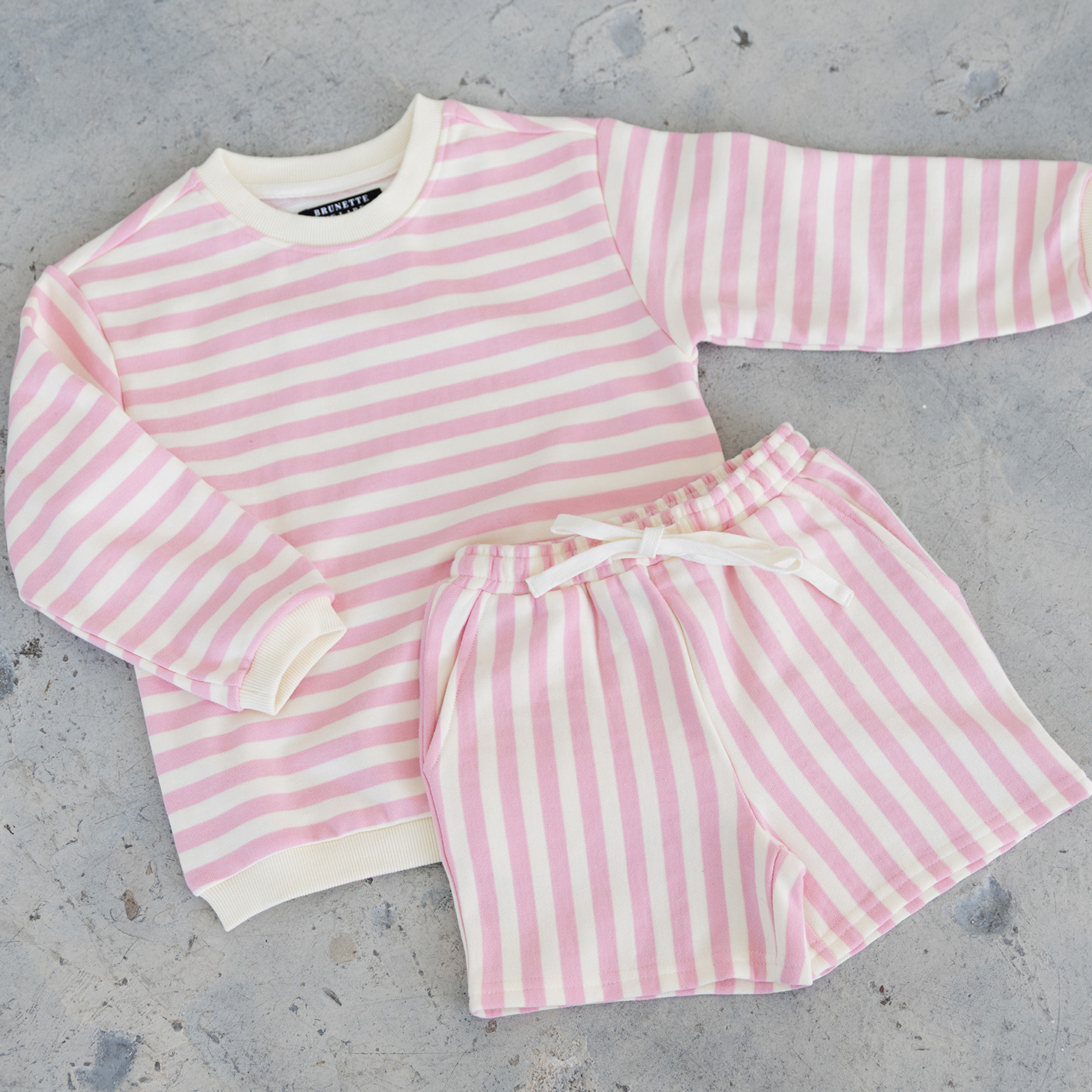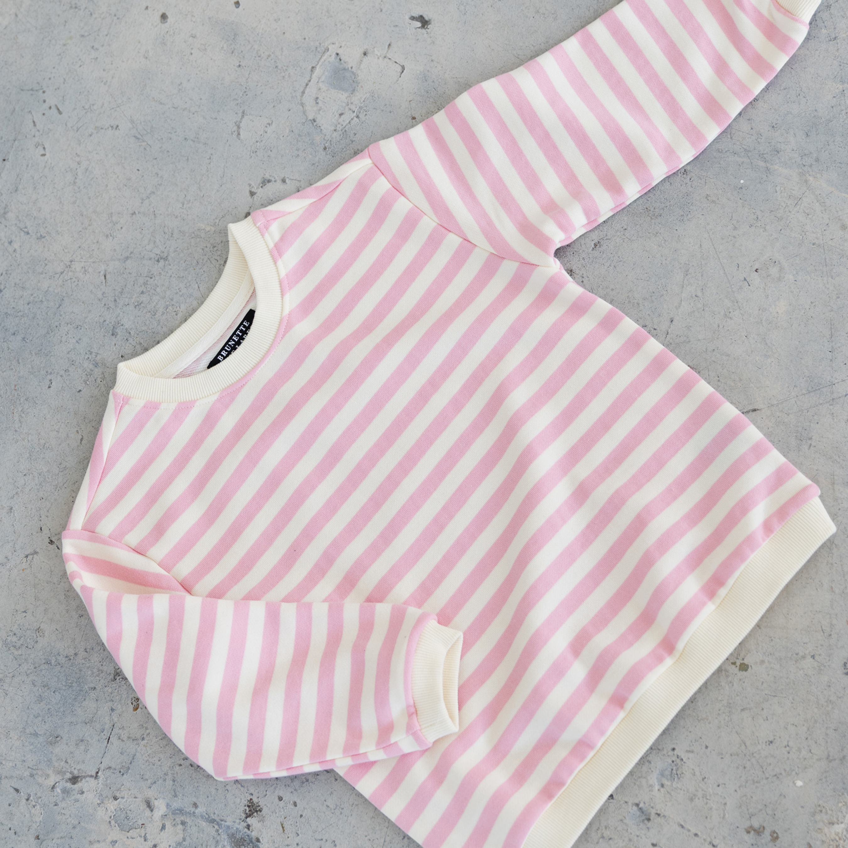 Brunette The Label PINK & Cream Striped Summer Sweatshirt