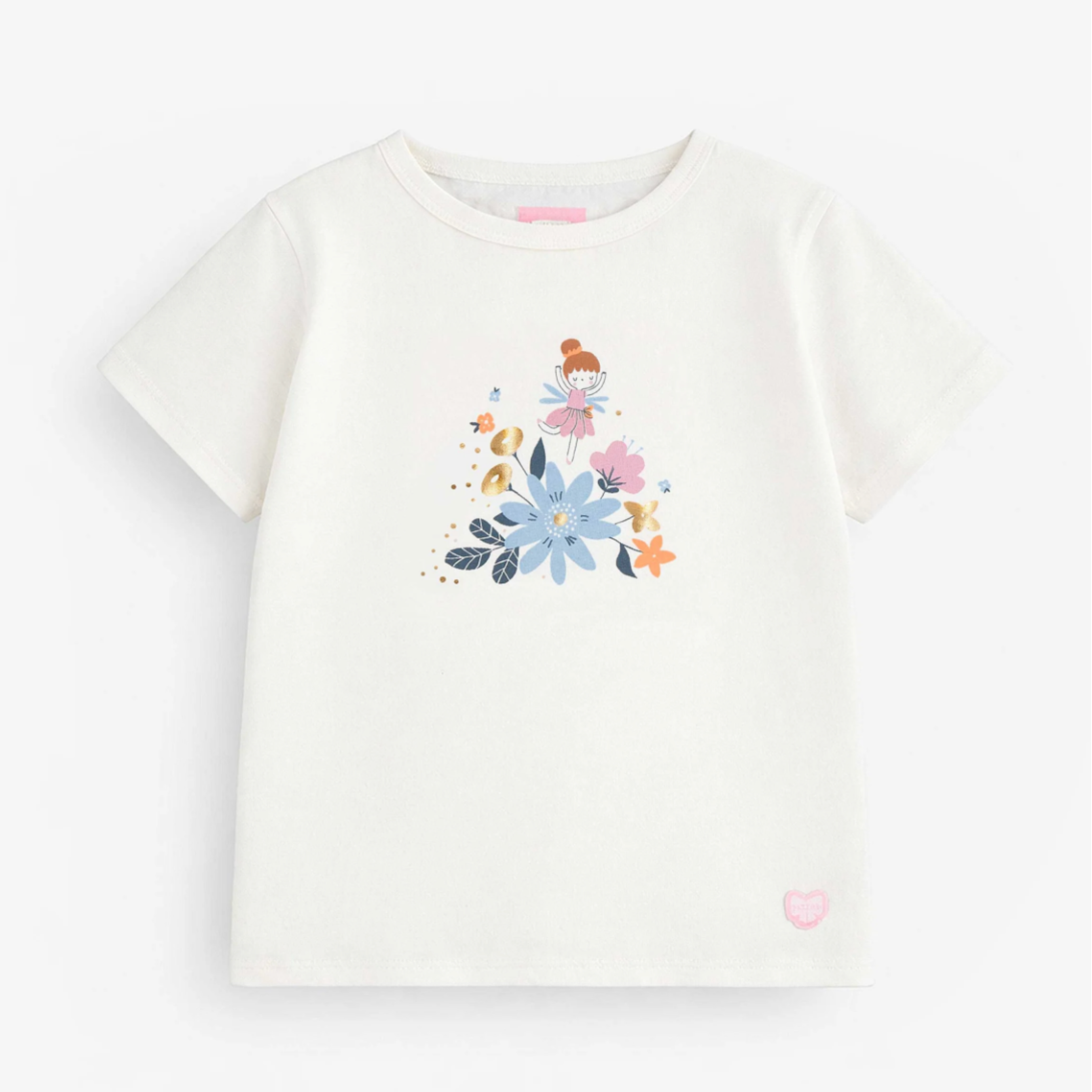 White T-shirt with an adorable illustration of a fairy and flowers. Features short sleeves and a round neckline. Made from stretchy cotton jersey in a regular fit for maximum comfort.