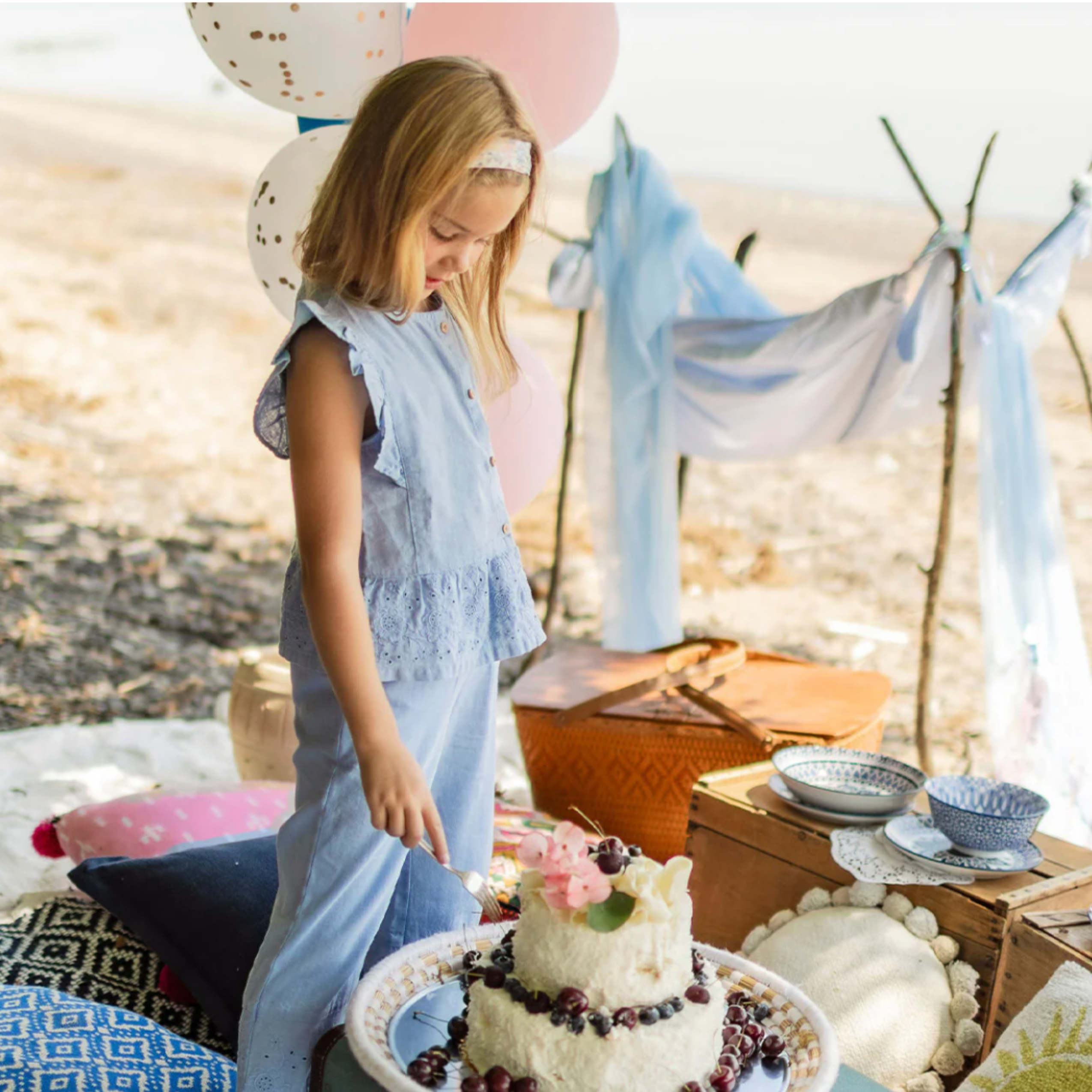 Lizzie Baby Blue Eyelet Embroidered Top
