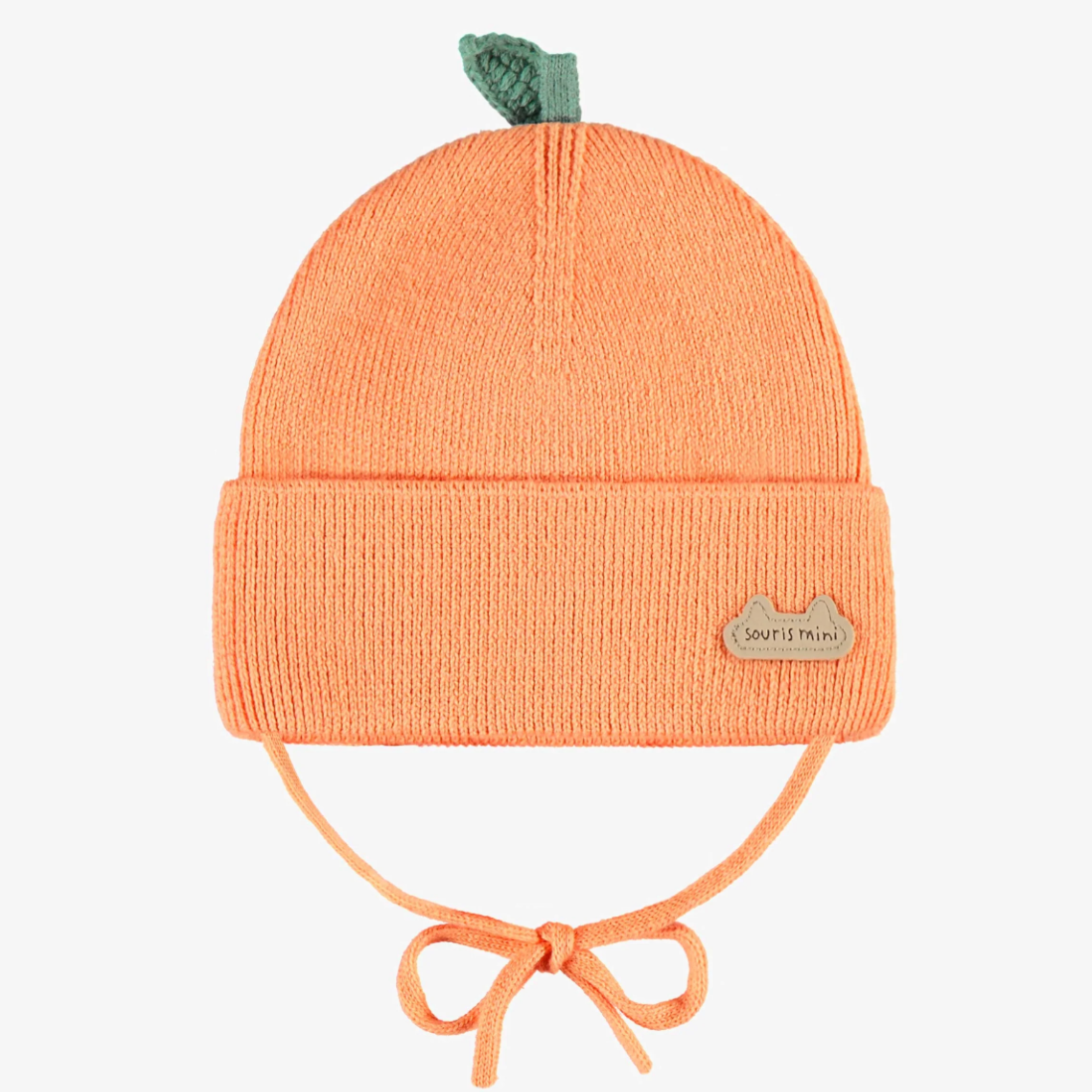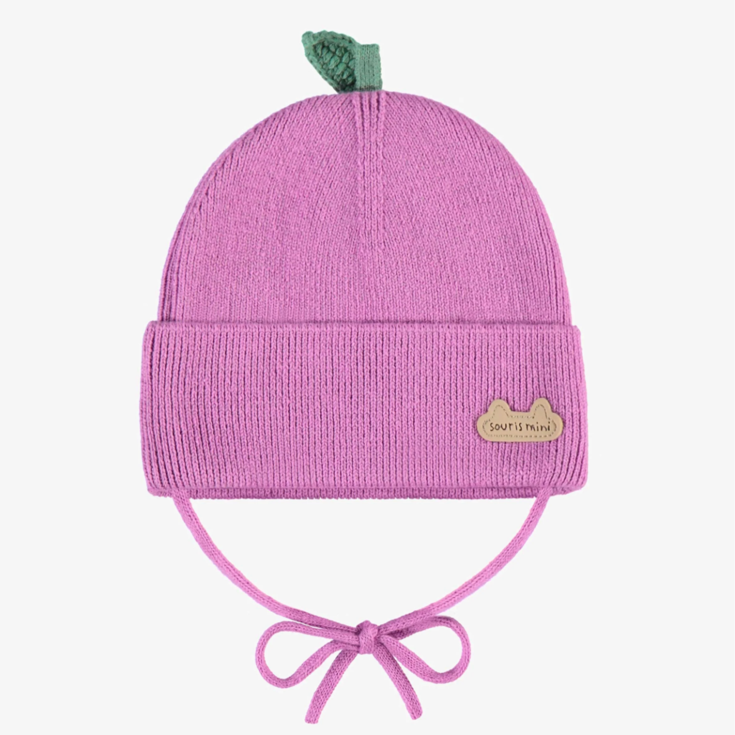 Grape or Orange knit hat with a drawstring and a small decorative leaf, adding a fruity touch to this cute accessory. Features a wide brim and adjustable ties to keep the hat securely in place on baby’s head. Made from soft cotton. One size: XS-S