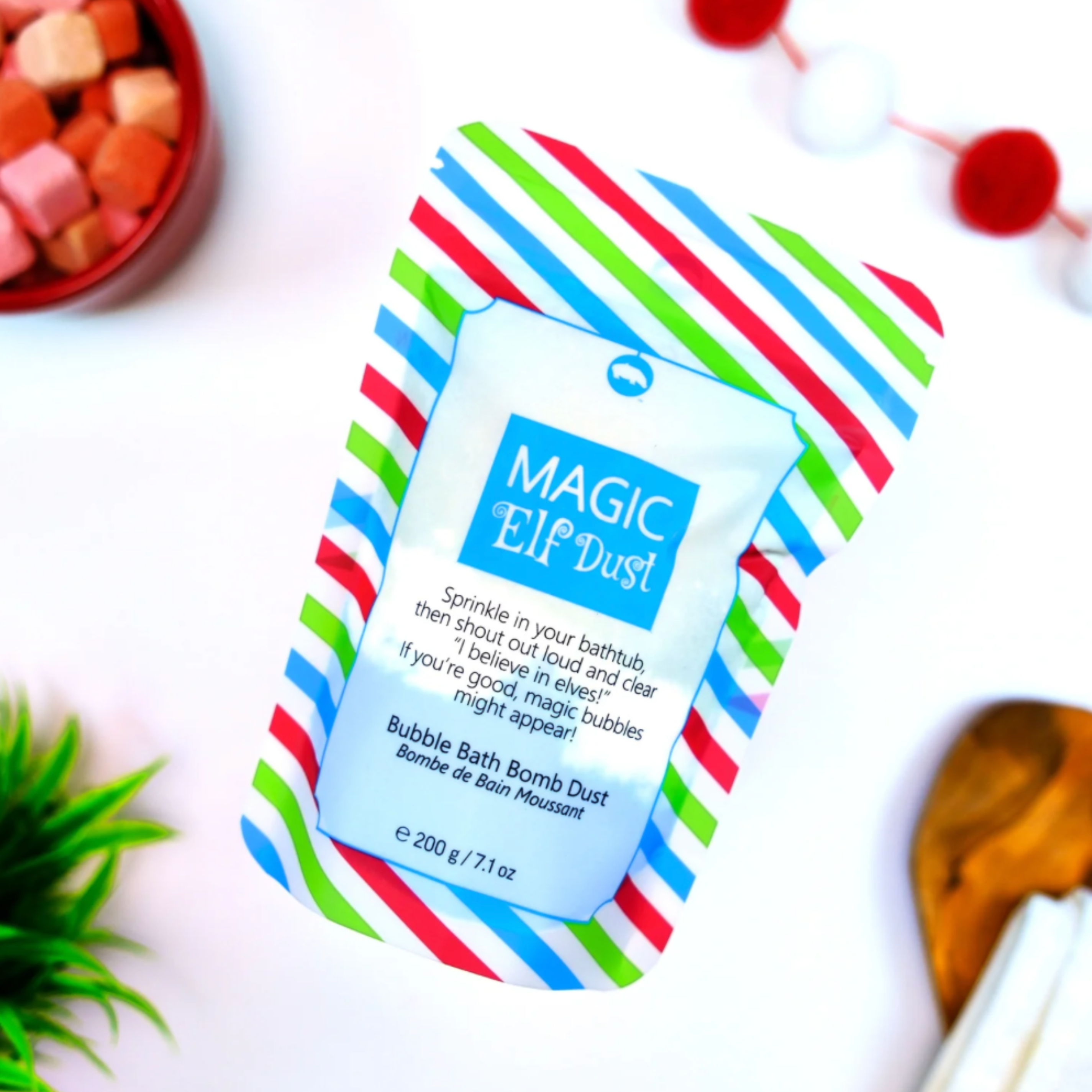 Pour Magic Elf Dust onto the top of the bath for an eruption of fizz, bubbles, fragrance and color!