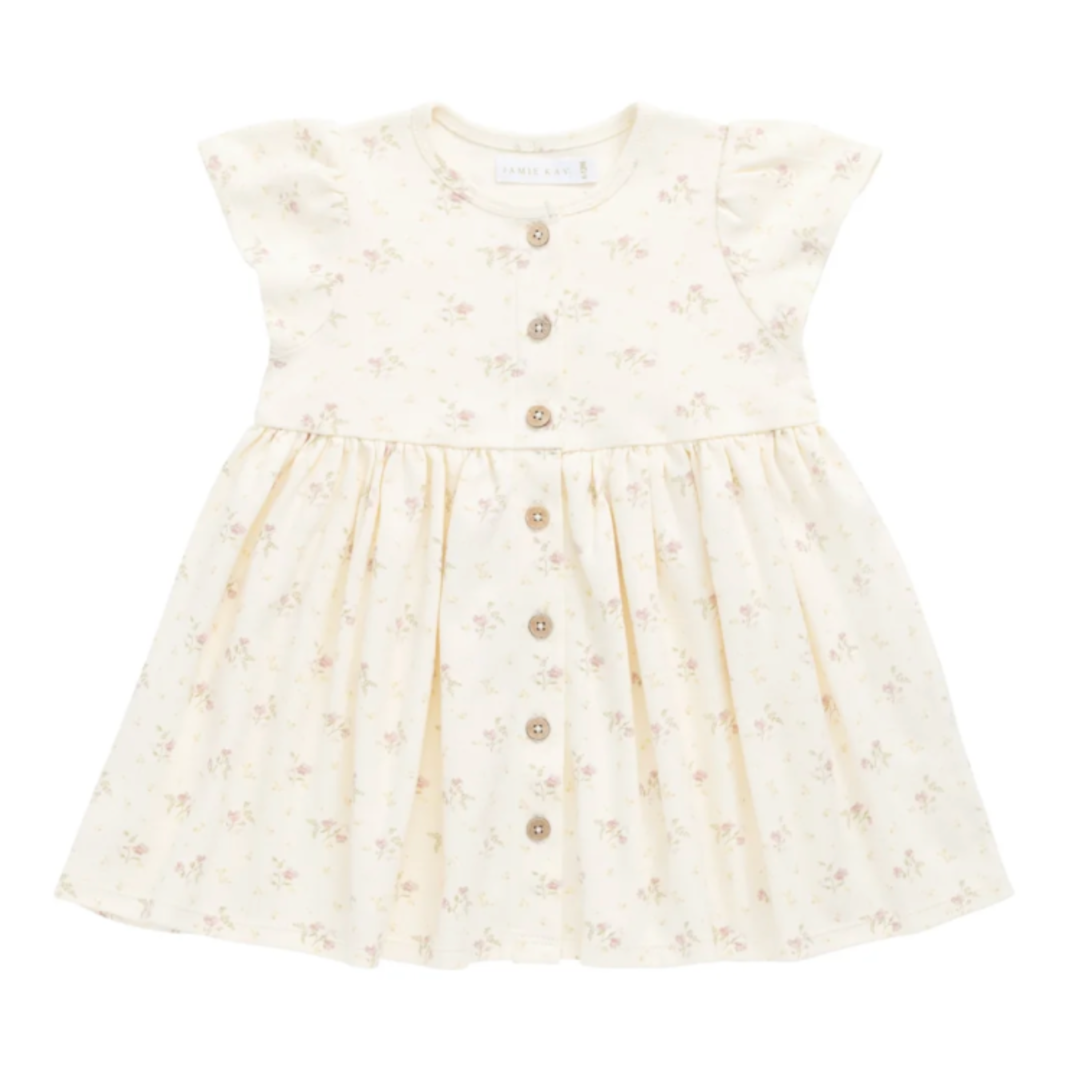 Crafted from 95% organic cotton and 5% elastane, this dress offers softness, breathability, and a gentle stretch for comfort. Organic cotton is grown without harmful chemicals, making it kinder to delicate skin and the environment. At Jamie Kay, we source only the finest quality cotton to ensure your child is wrapped in comfort and care.