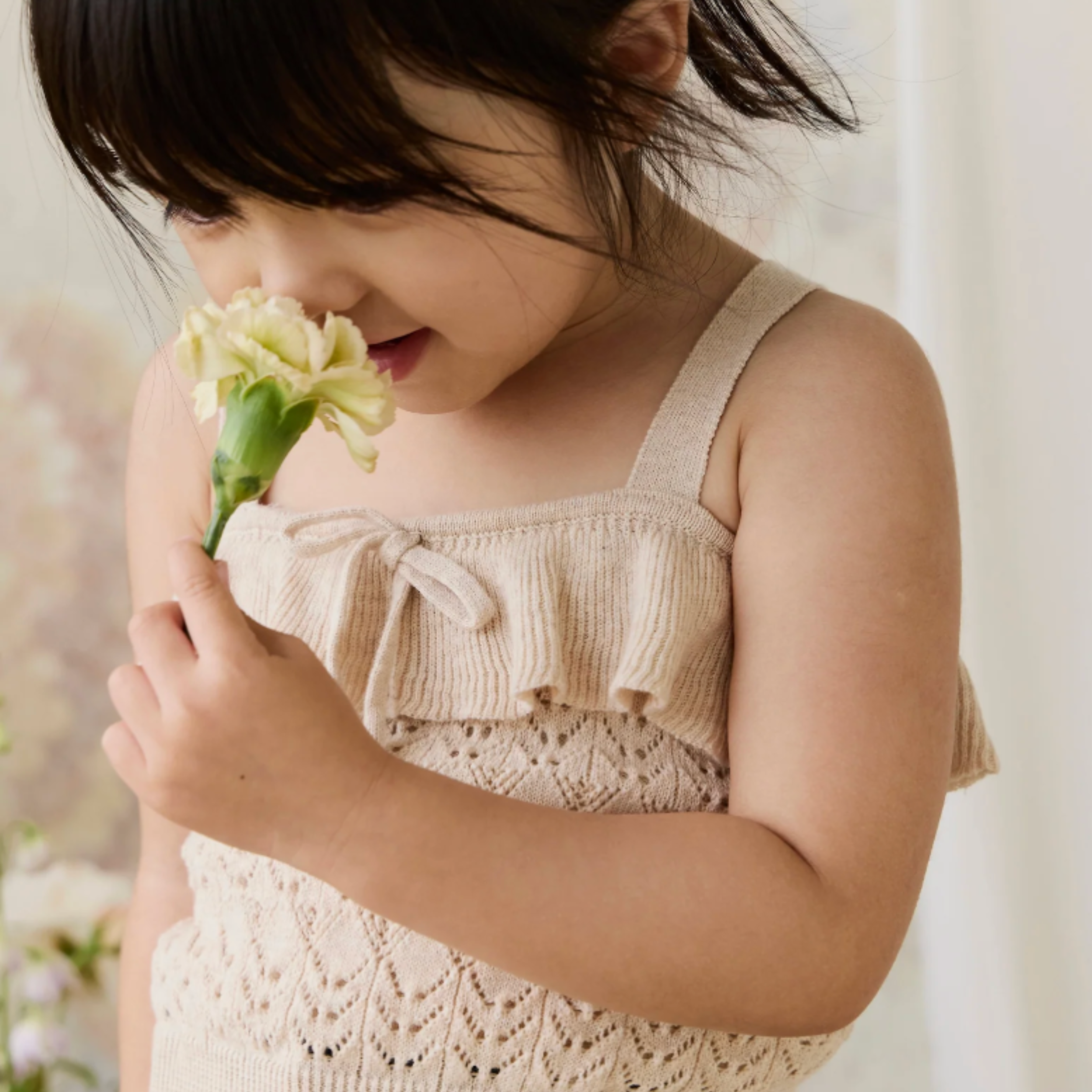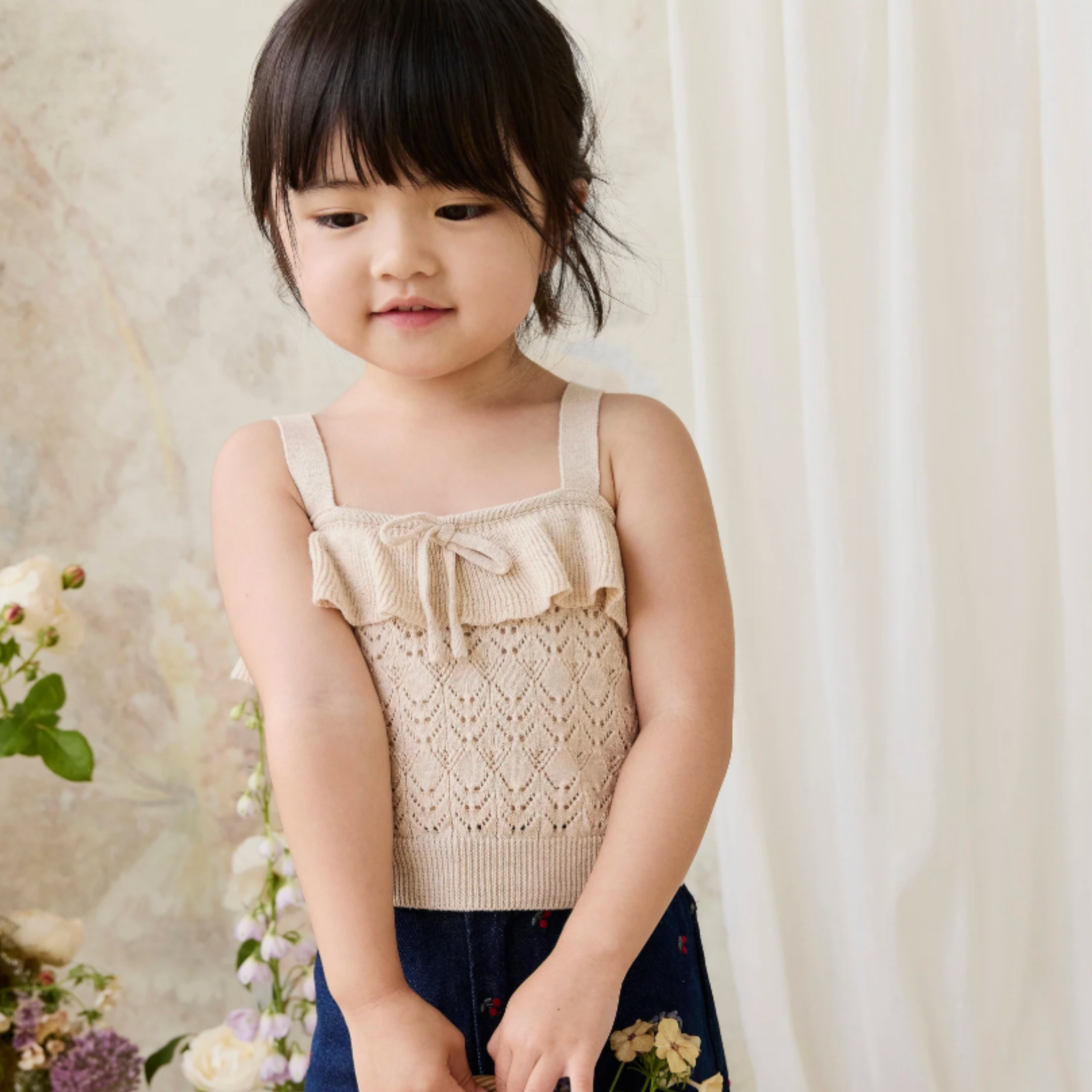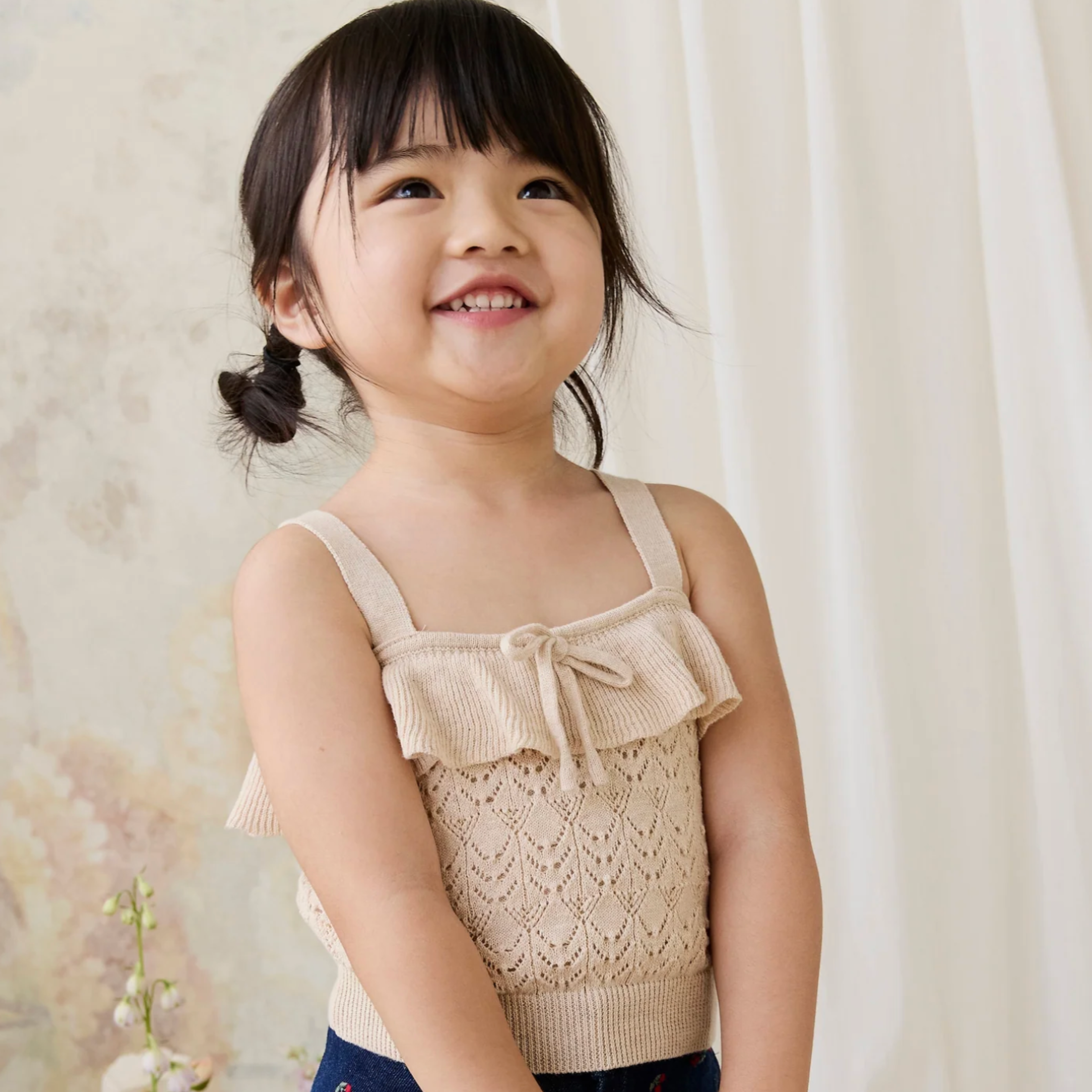 Add a touch of delicate charm to your little one’s wardrobe with our Melanie Top in Light Oatmeal Marle. Featuring a soft knit texture, ruffle trim, and dainty tie bow, this piece is perfect for layering or wearing on its own for a dreamy, timeless look.