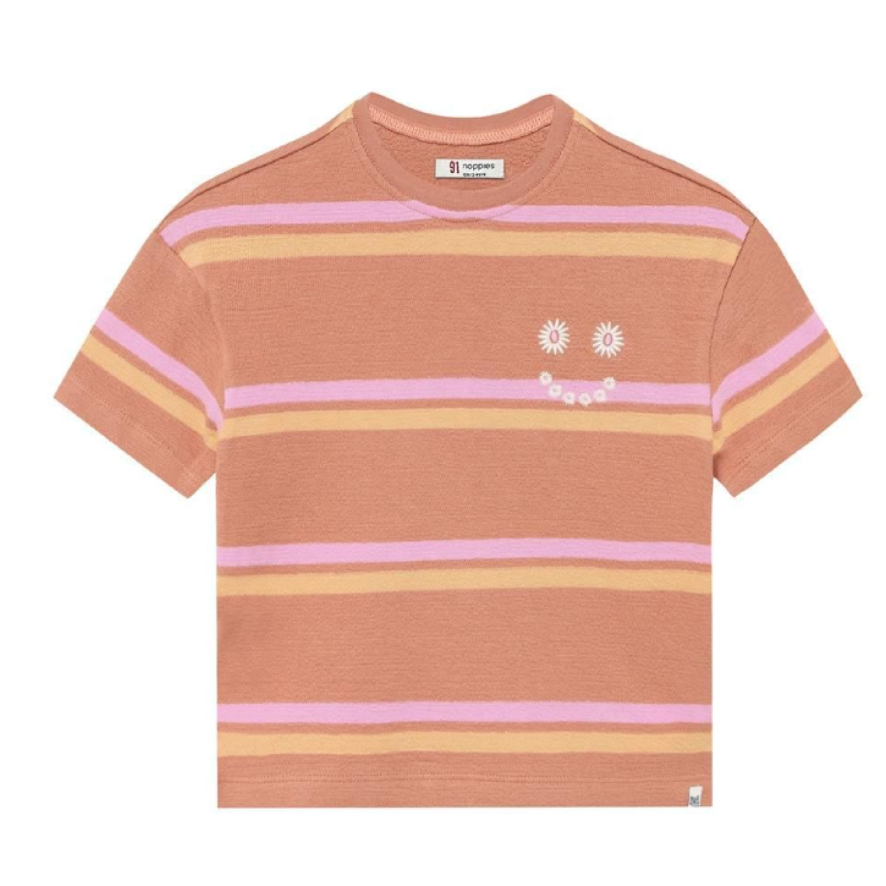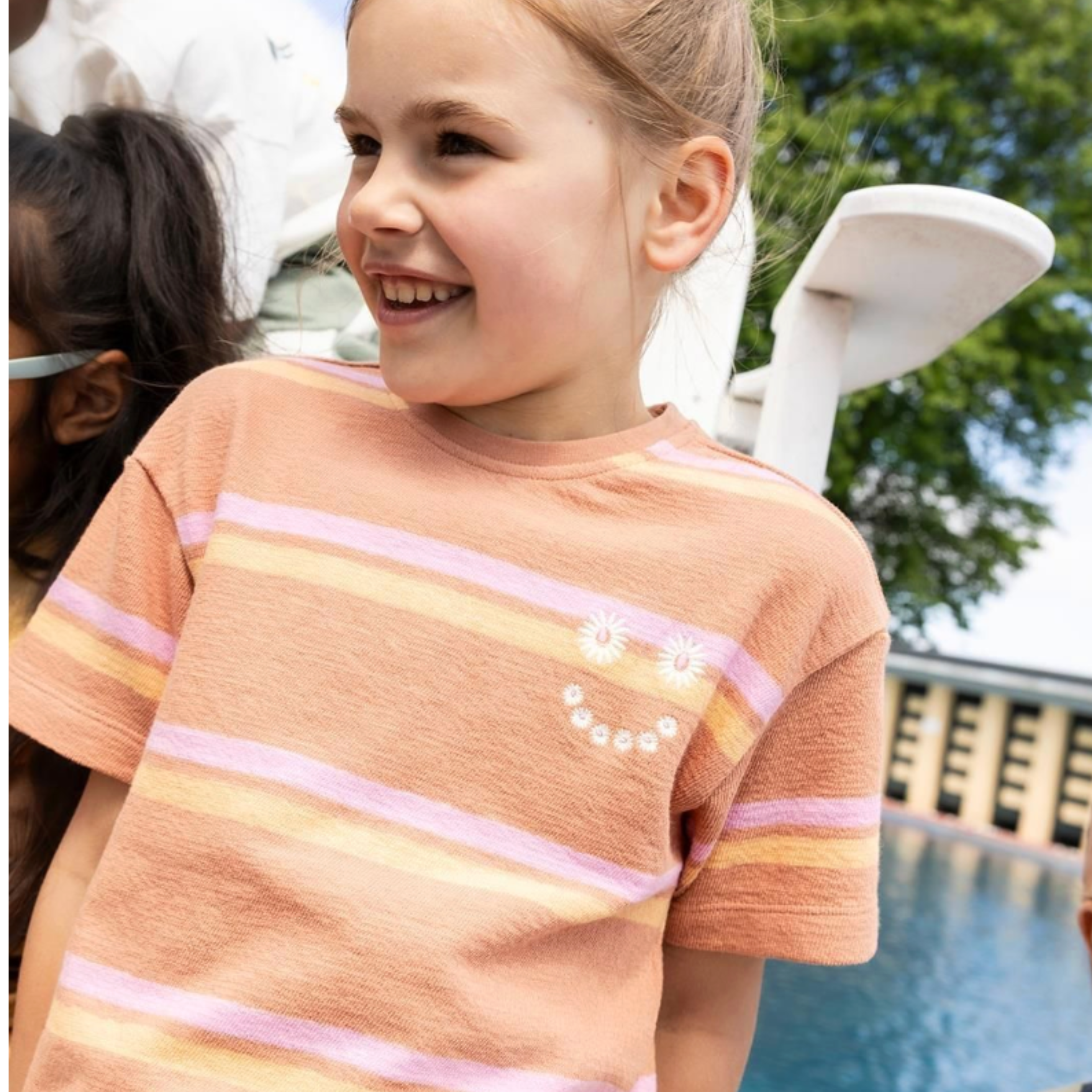 Girls T-shirt by Noppies Kids – fresh and timeless striped This T-shirt by Noppies Kids is a great basic with a playful twist. Made of airy jersey mesh of 100% organic cotton, with a cheerful striped pattern. The short sleeves, round neck and regular fit ensure a comfortable fit that is easy to combine. Thanks to the GOTS certification (CERES-0366), you are also consciously choosing sustainability. Perfect for school, playing or relaxing – this shirt goes with everything and always fits well.