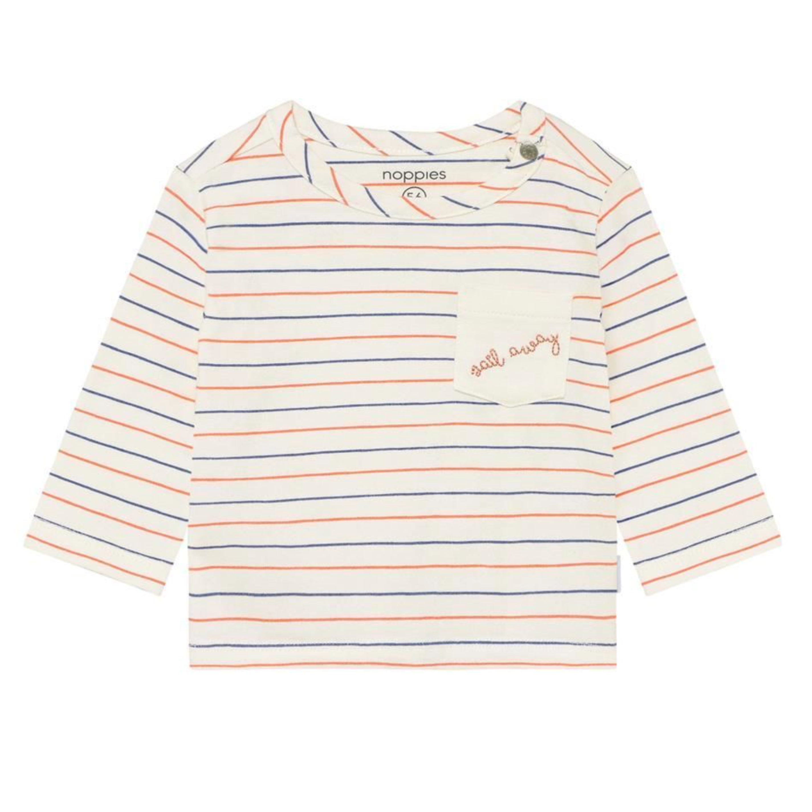 A classic with a comfy twist: this striped Noppies Baby long sleeve is made from soft jersey with a touch of stretch—perfect for active babies. The blend of organic cotton and elastane offers a great fit and plenty of freedom to move. The shoulder snap makes dressing easy. Its timeless stripe pattern pairs easily with jeans, joggers or layered under a cardigan. GOTS certified (CERES-0366), this piece is produced sustainably and responsibly. A stylish and comfortable must-have for every baby wardrobe.