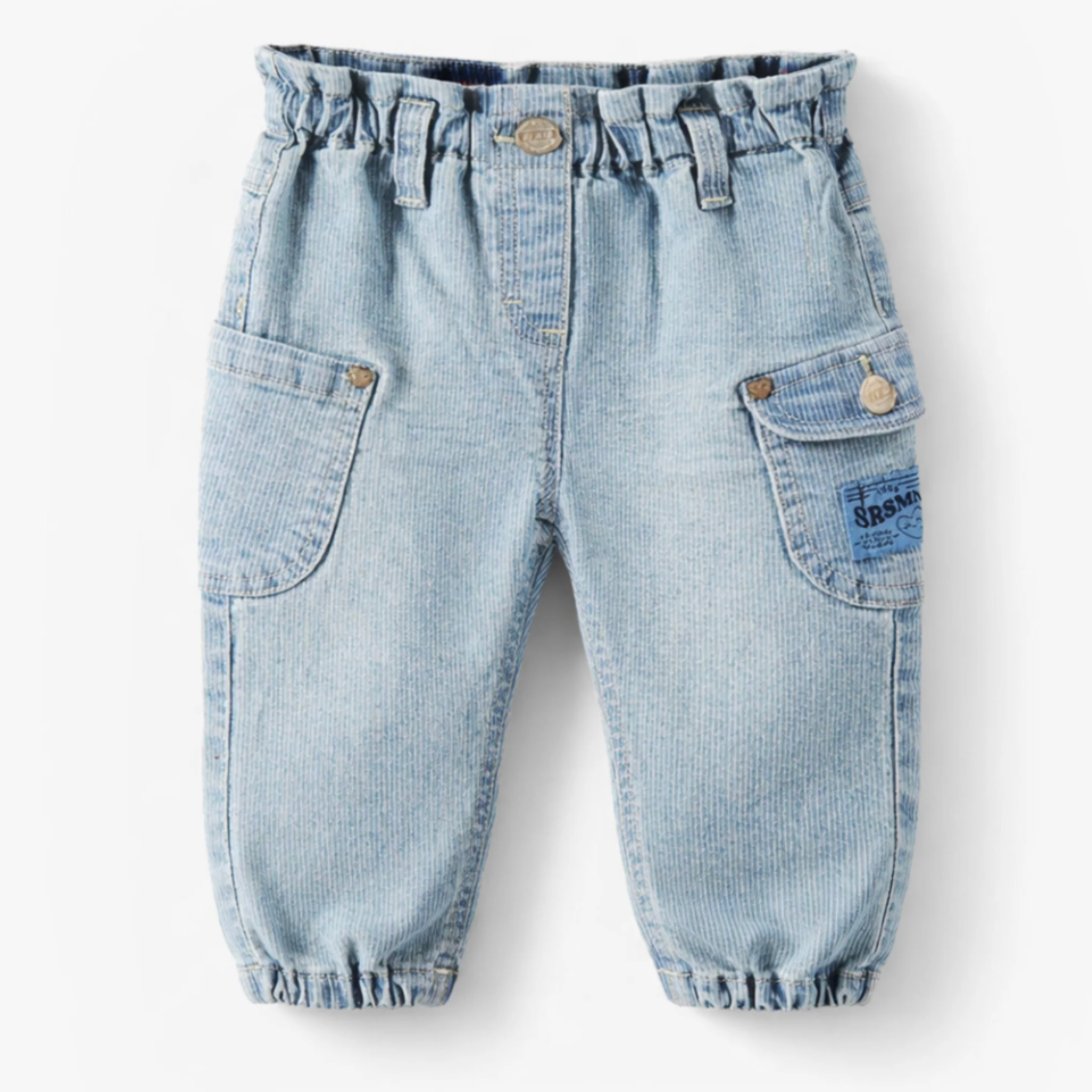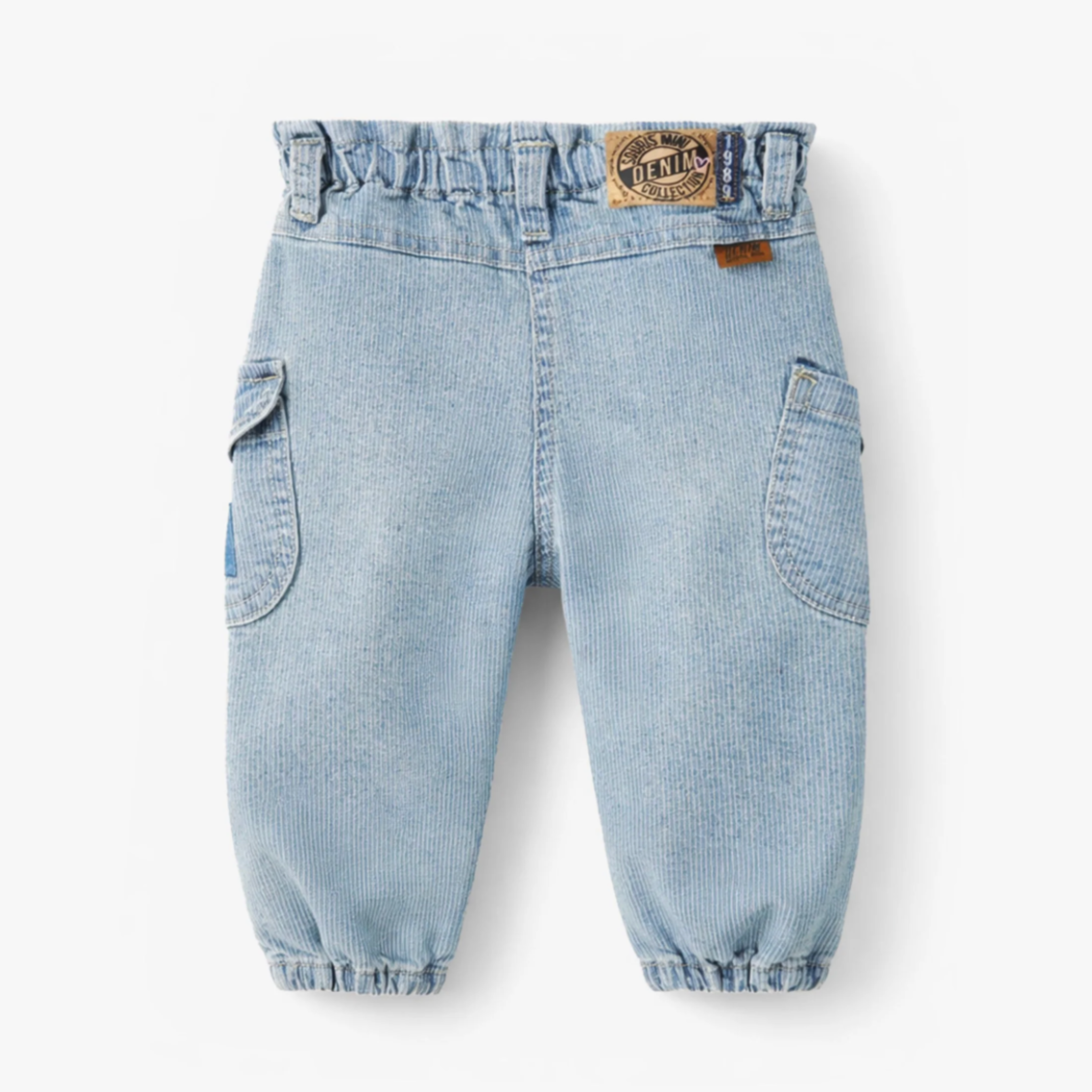 Pale blue striped jeans with an elastic waistband for maximum comfort. Features two large side pockets that add a trendy touch. The elastic cuffs provide a stylish look and a better fit. Made from soft denim in a relaxed fit.