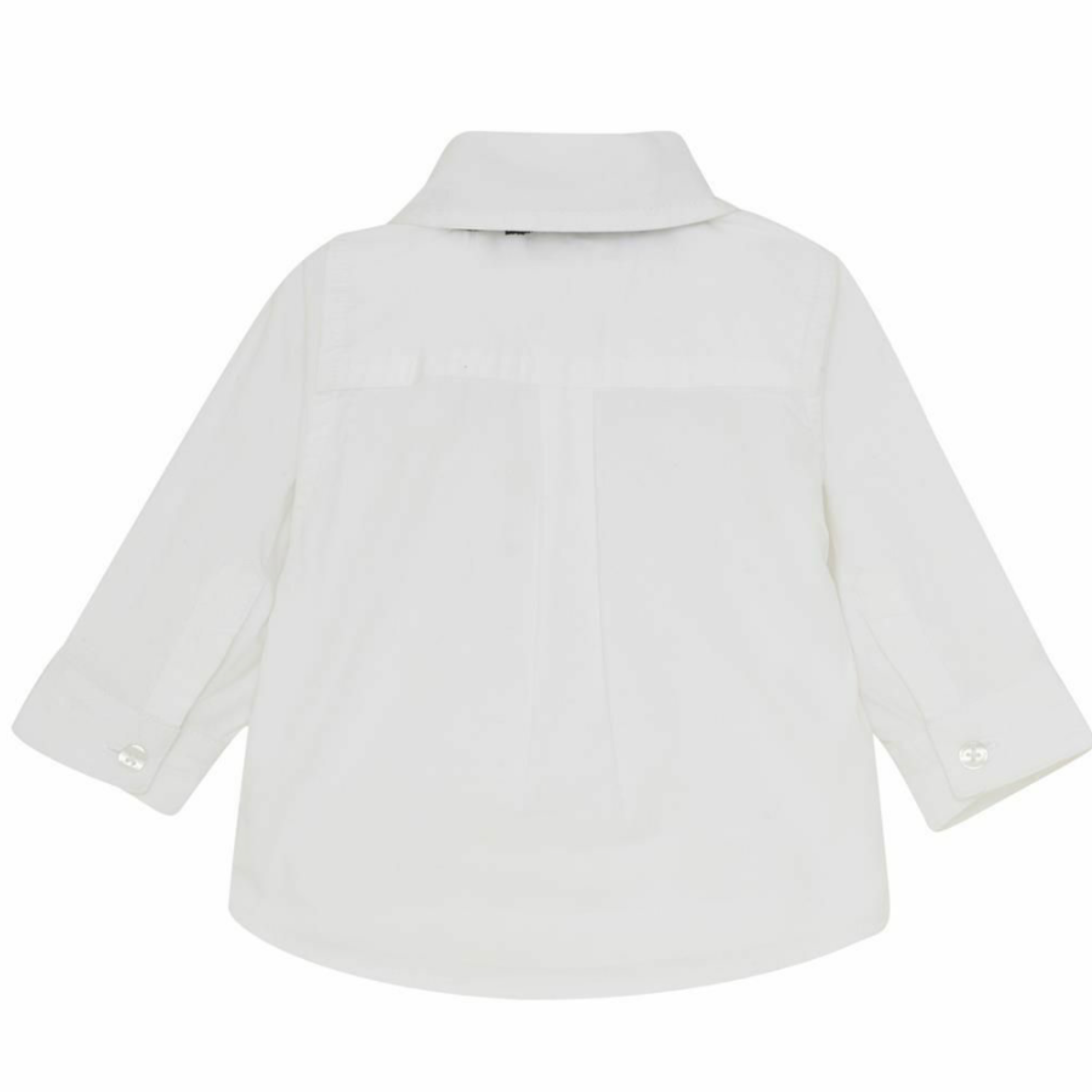 Boys' Shirt Sublet from Noppies Baby is made from responsibly sourced cotton and lets your little one shine. With this garment, you're not only choosing style and comfort but also a better world. The beautiful color is timeless, making it perfect for pairing with pants from our baby collection. Thanks to the polo collar and long sleeves, this shirt is a real eye-catcher for your little one. The button closure adds a great finishing touch. The long-sleeved shirt with a matching bow tie has a neat, stylish look, making it suitable for various occasions. Perfect for a wedding, reception, communion, or party! Not only will your little one steal the show, but the fabric also feels soft on the skin and is incredibly comfortable to wear.