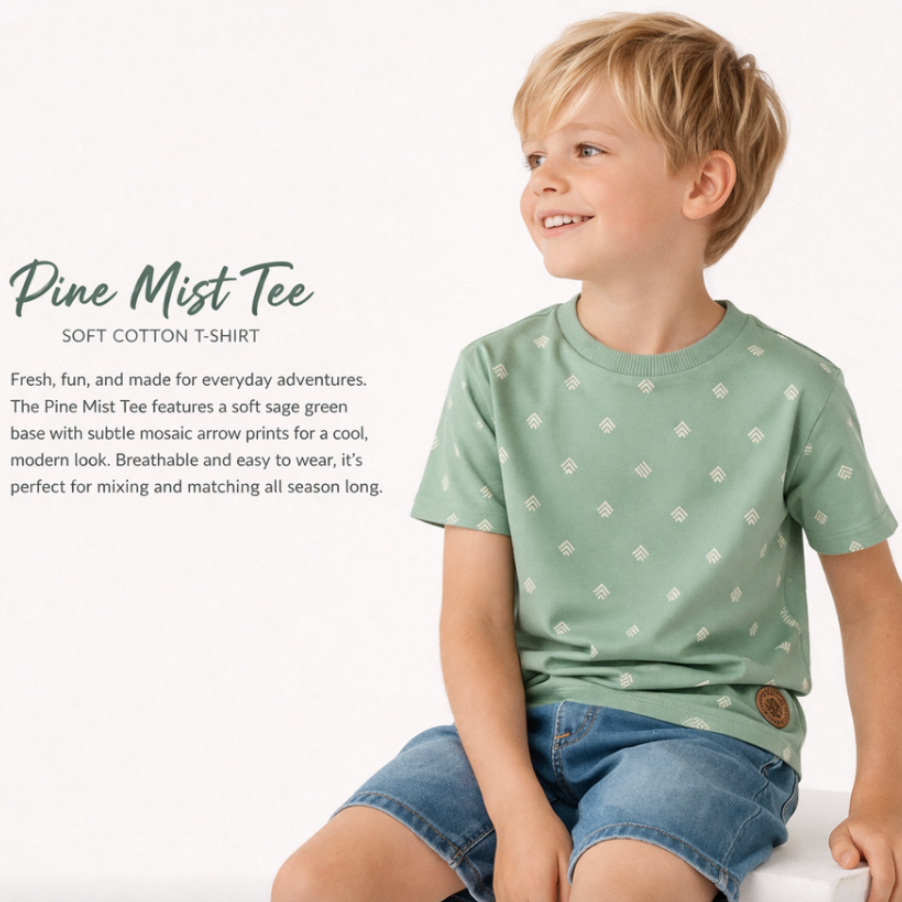 Soft and stylish, the Little Adventure Tee is perfect for everyday exploring. Featuring a subtle sage green color and minimalist chevron pattern, this relaxed cotton tee adds a touch of outdoor charm to any outfit. 100% Cotton
