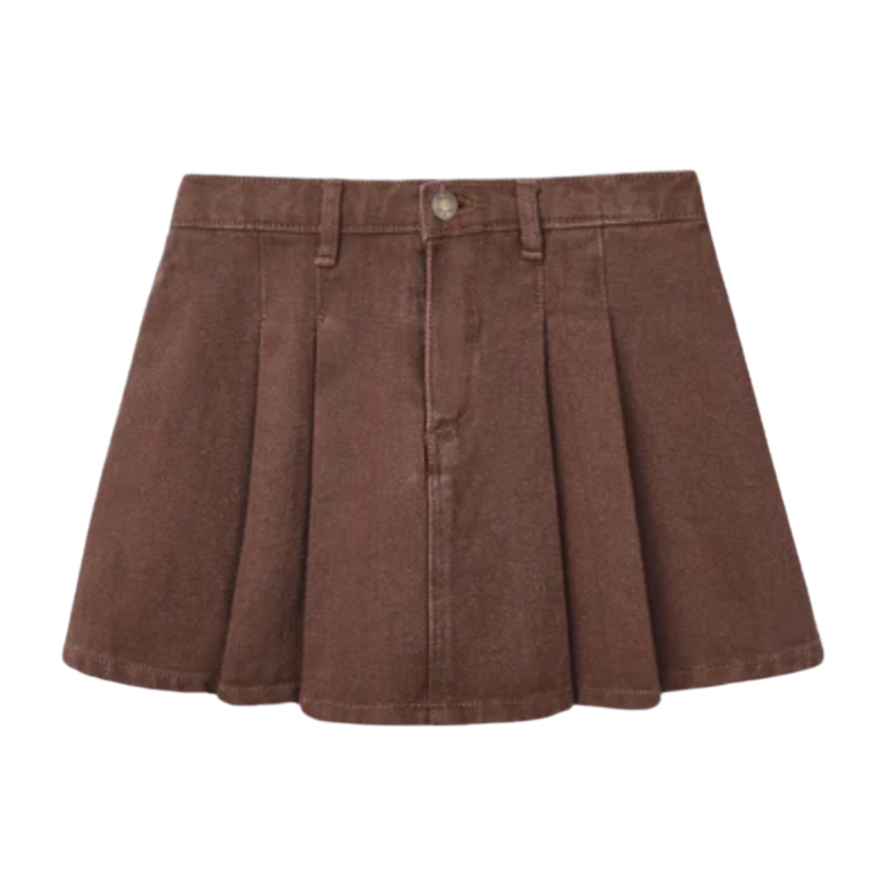 With crisp pleats and classic denim, this skirt adds a fun, preppy touch to any outfit.