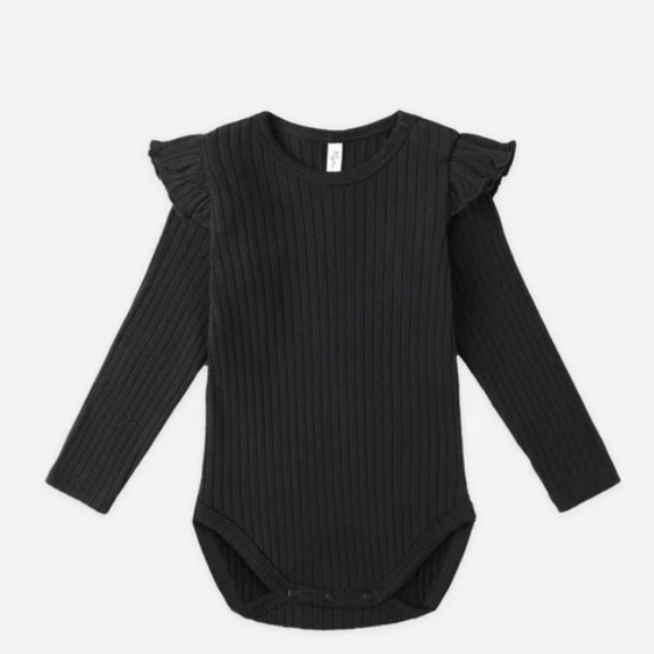 This long sleeve bodysuit is a must-have for your little gal this season! Designed with sweet shoulder ruffles and snaps at the neck and bottom for easy changes. Pair with our leggings to complete the look.