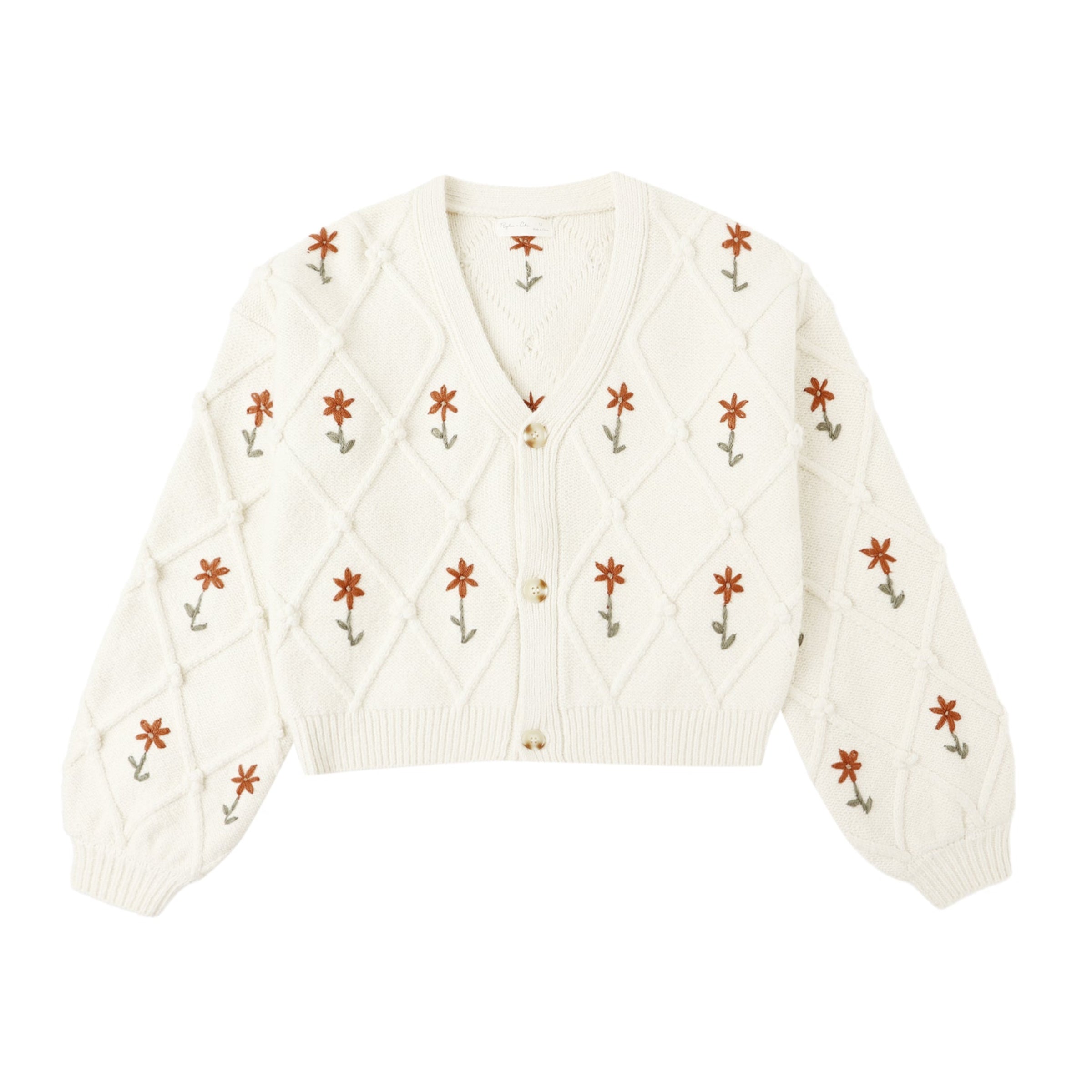 Cardigan: Made of 43% acrylic / 29% cotton / 26% polyester / 2% elastane. Embroidery: Made of 100% acrylic.