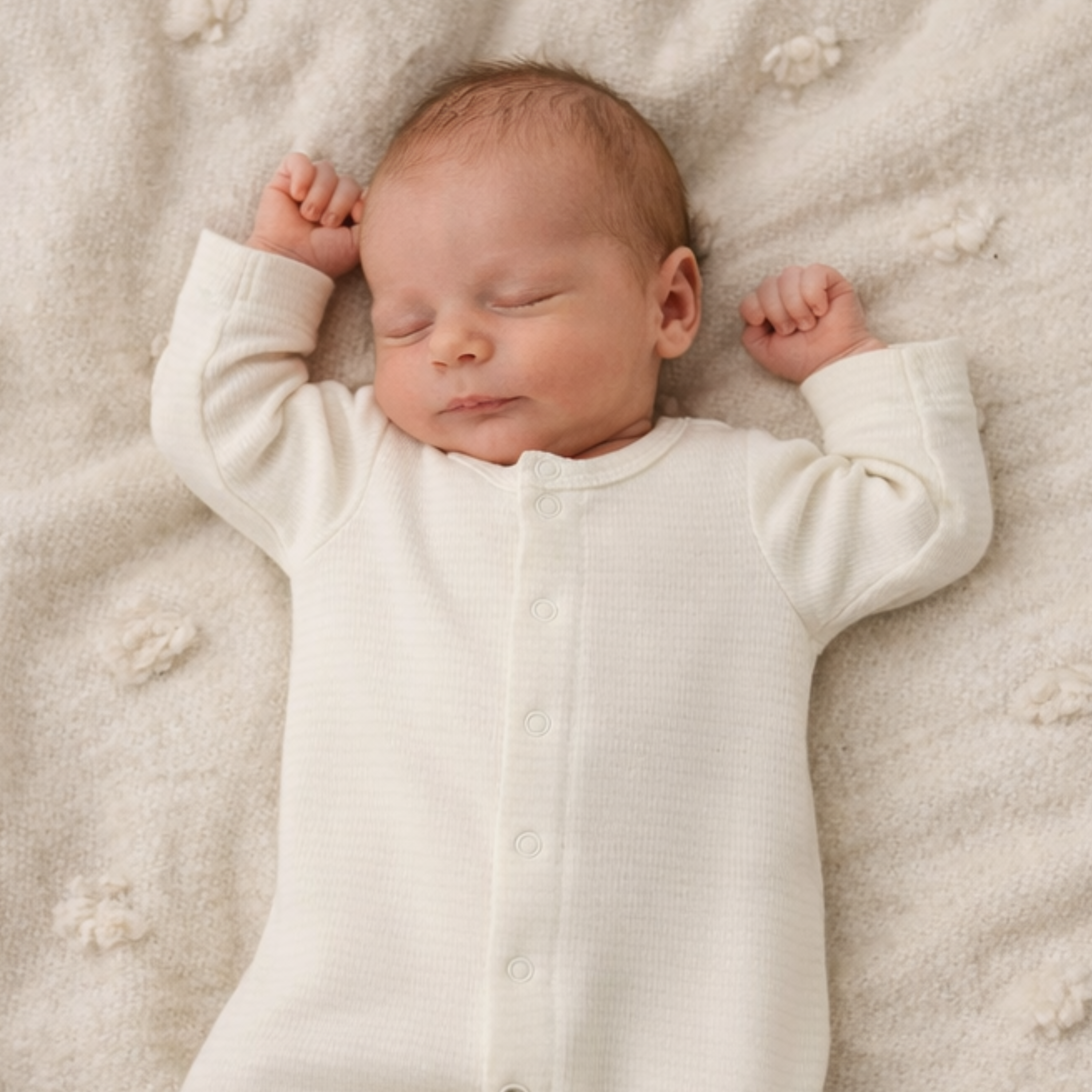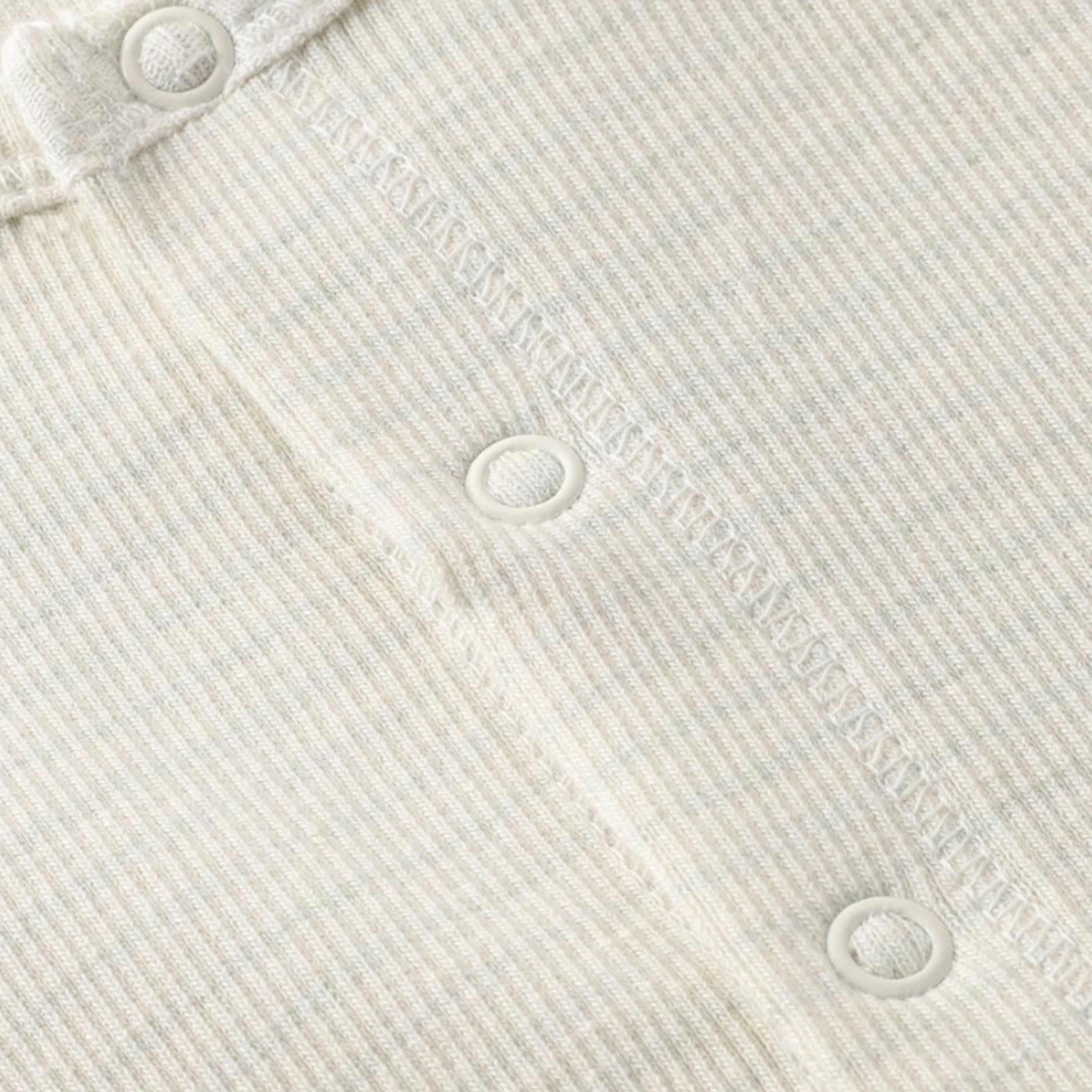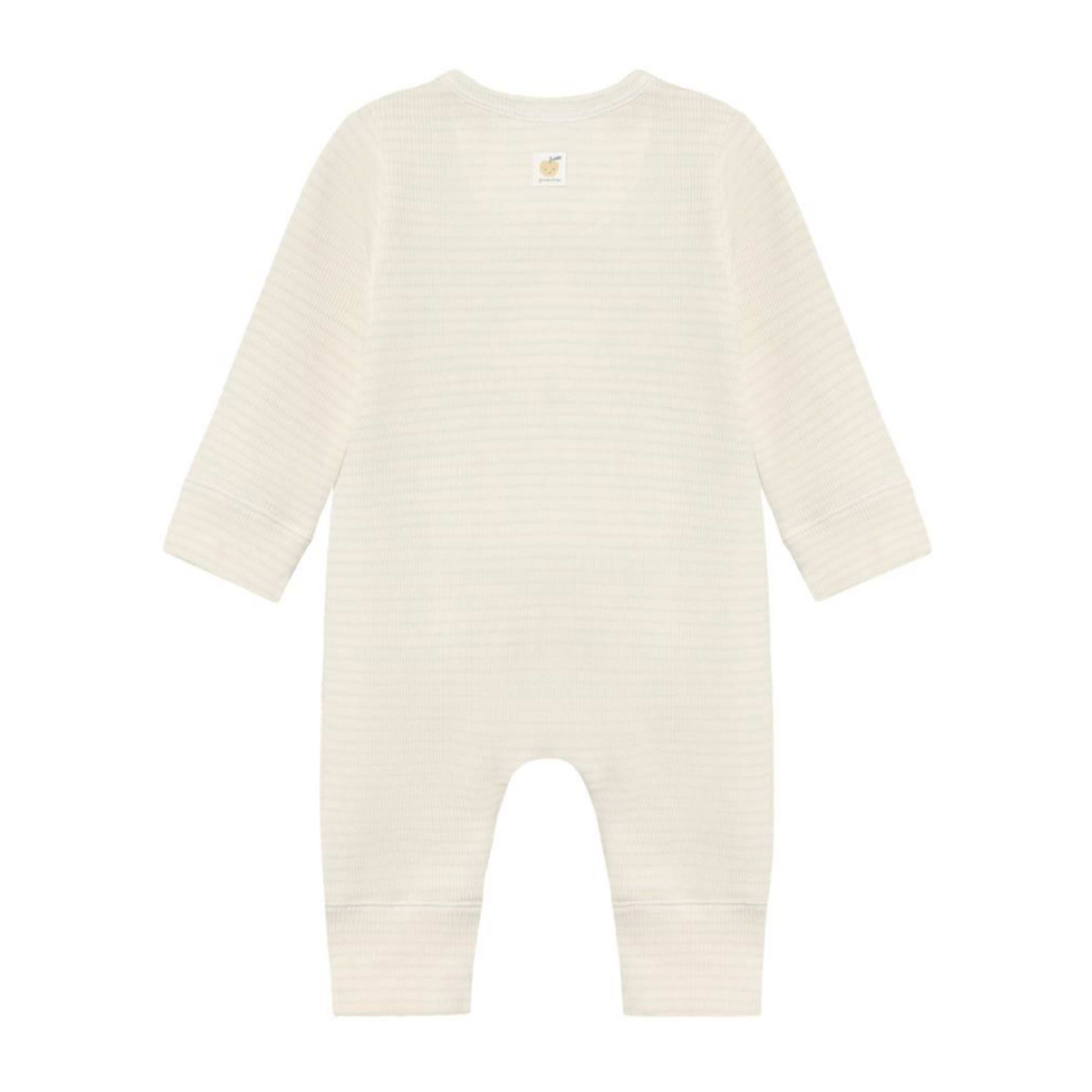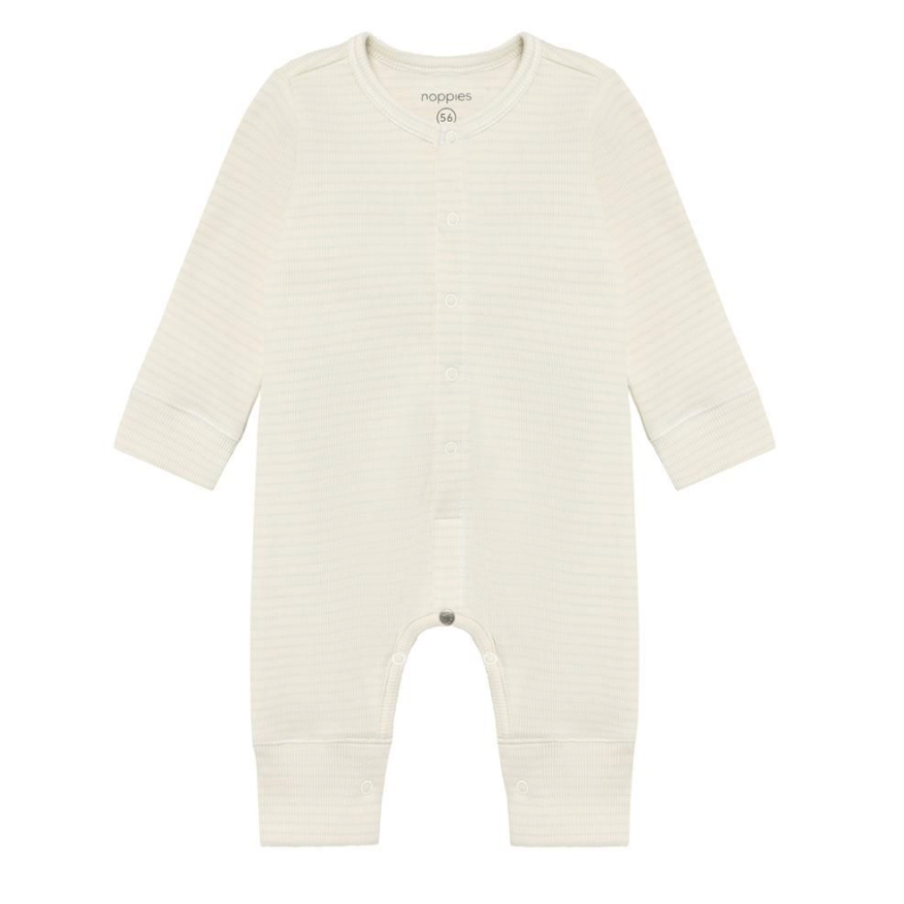 This unisex baby playsuit from Noppies offers both comfort and a stylish ribbed look. Made from stretch organic cotton for a great fit and soft feel. Features long sleeves, a round neckline and convenient press studs at the bottom – making diaper changes quick and easy. The soft rib fabric allows for free movement while keeping your little one cozy. GOTS certified (CERES-0366), responsibly and sustainably produced. A timeless essential that pairs well with a cardigan or booties.
