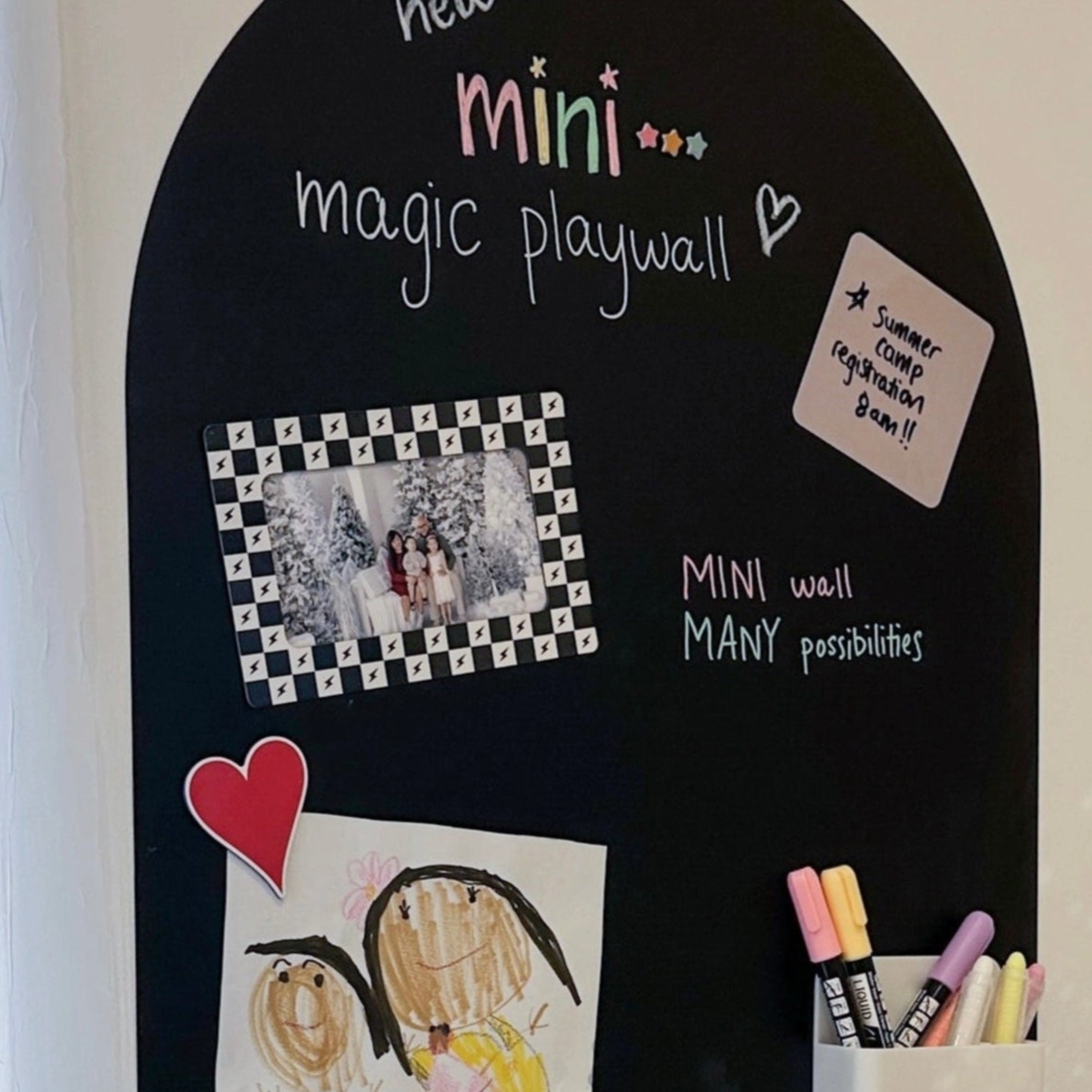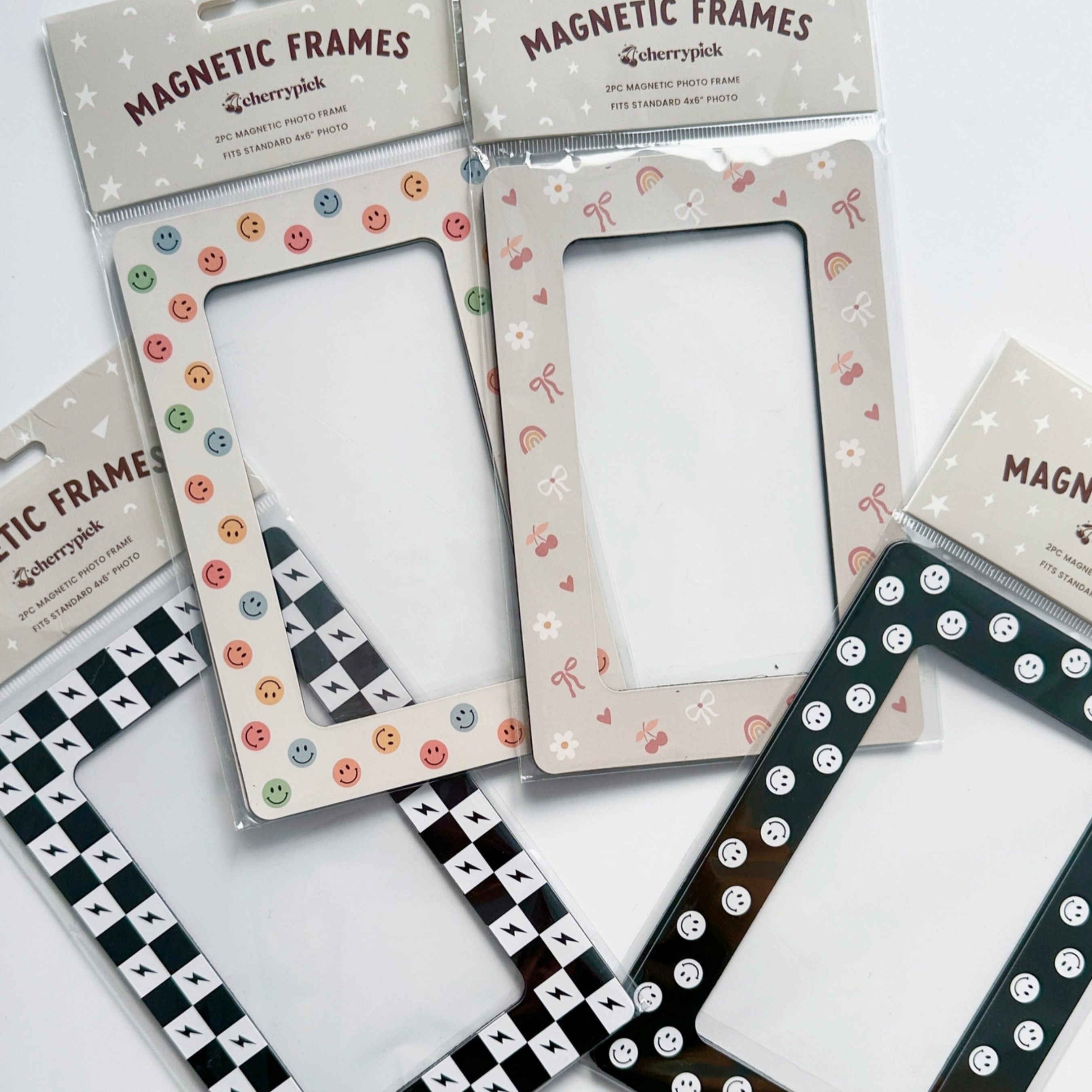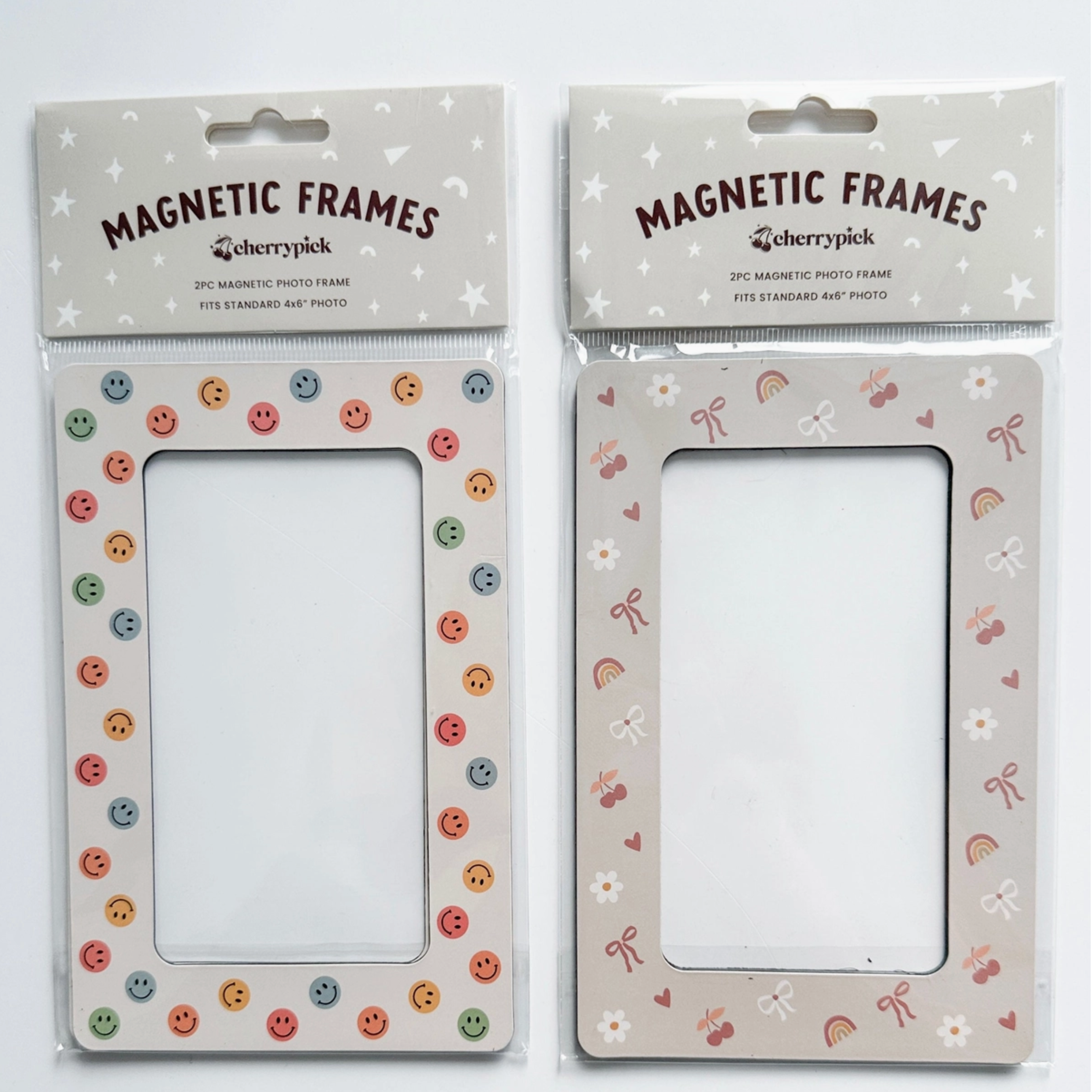 Show off your fave memories with ease using our fun Magnetic Photo Frames! Each pack includes 2 magnetic frames, designed to hold standard 4x6" photos. They stick securely to any magnetic surface— whether it’s your fridge, locker, or our Magic Playwall. Perfect for adding a personal touch to any space!