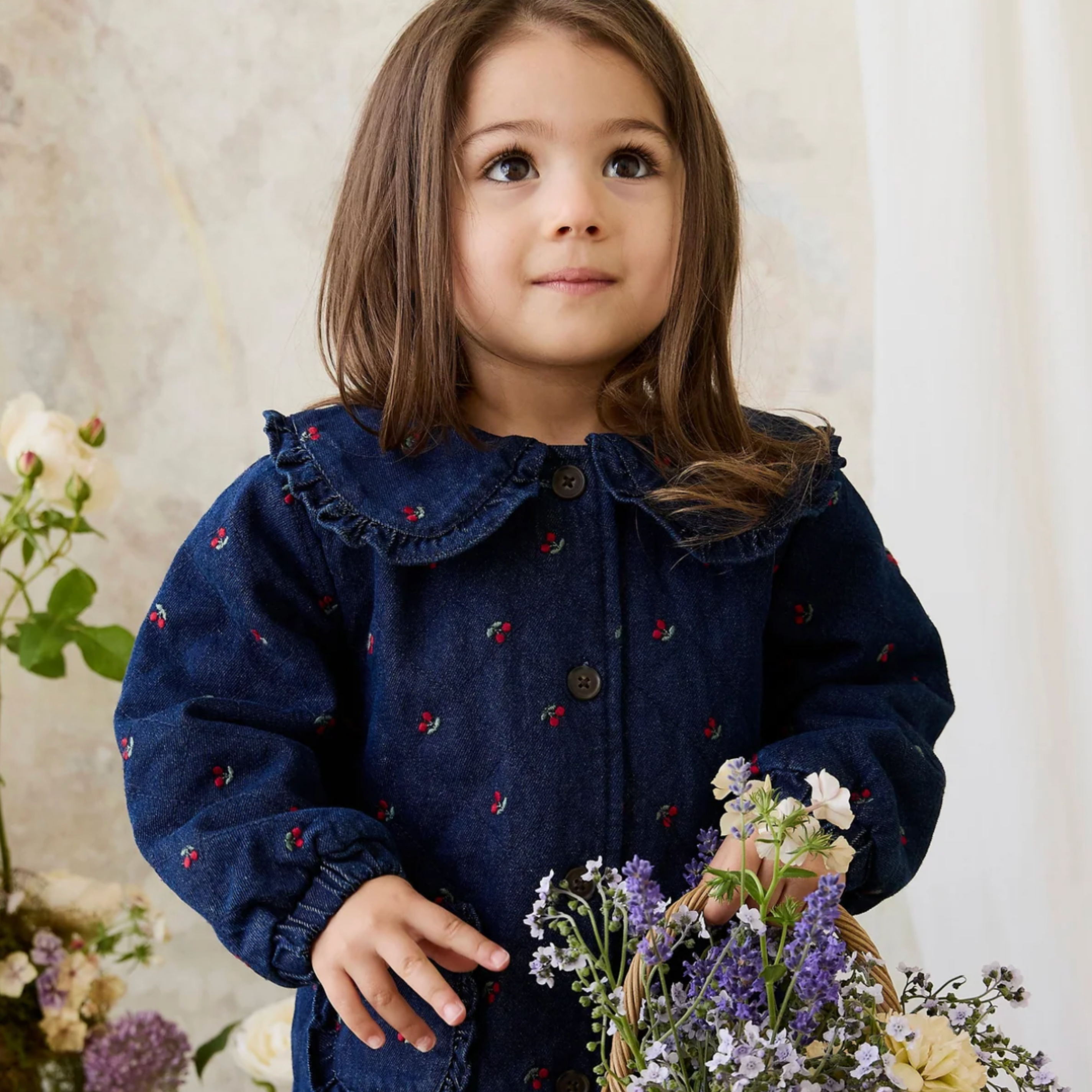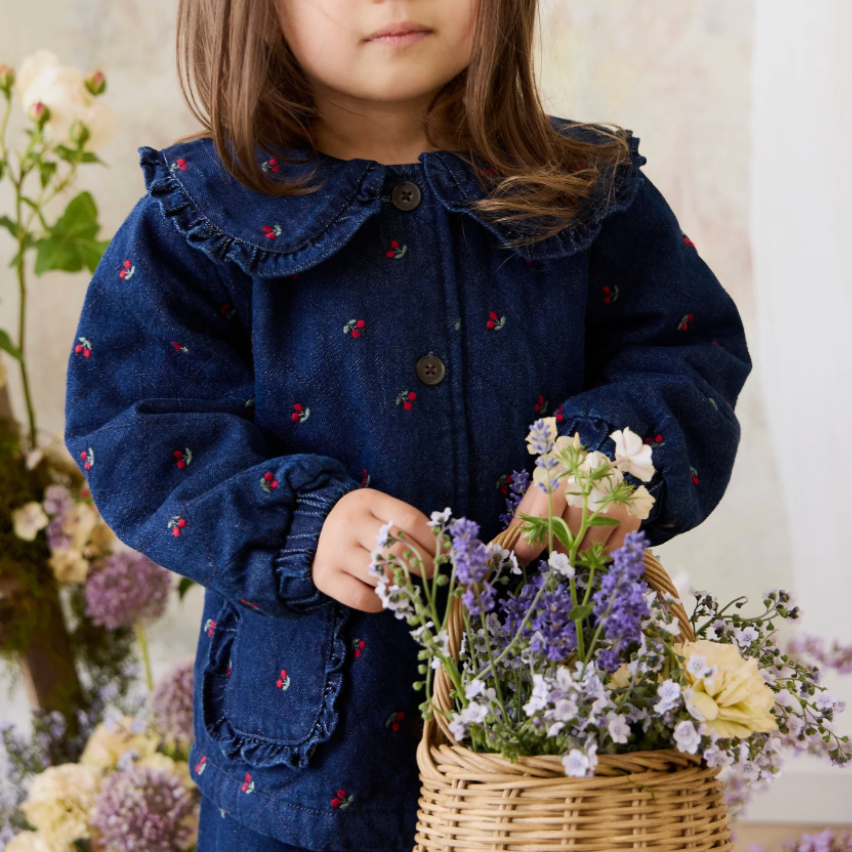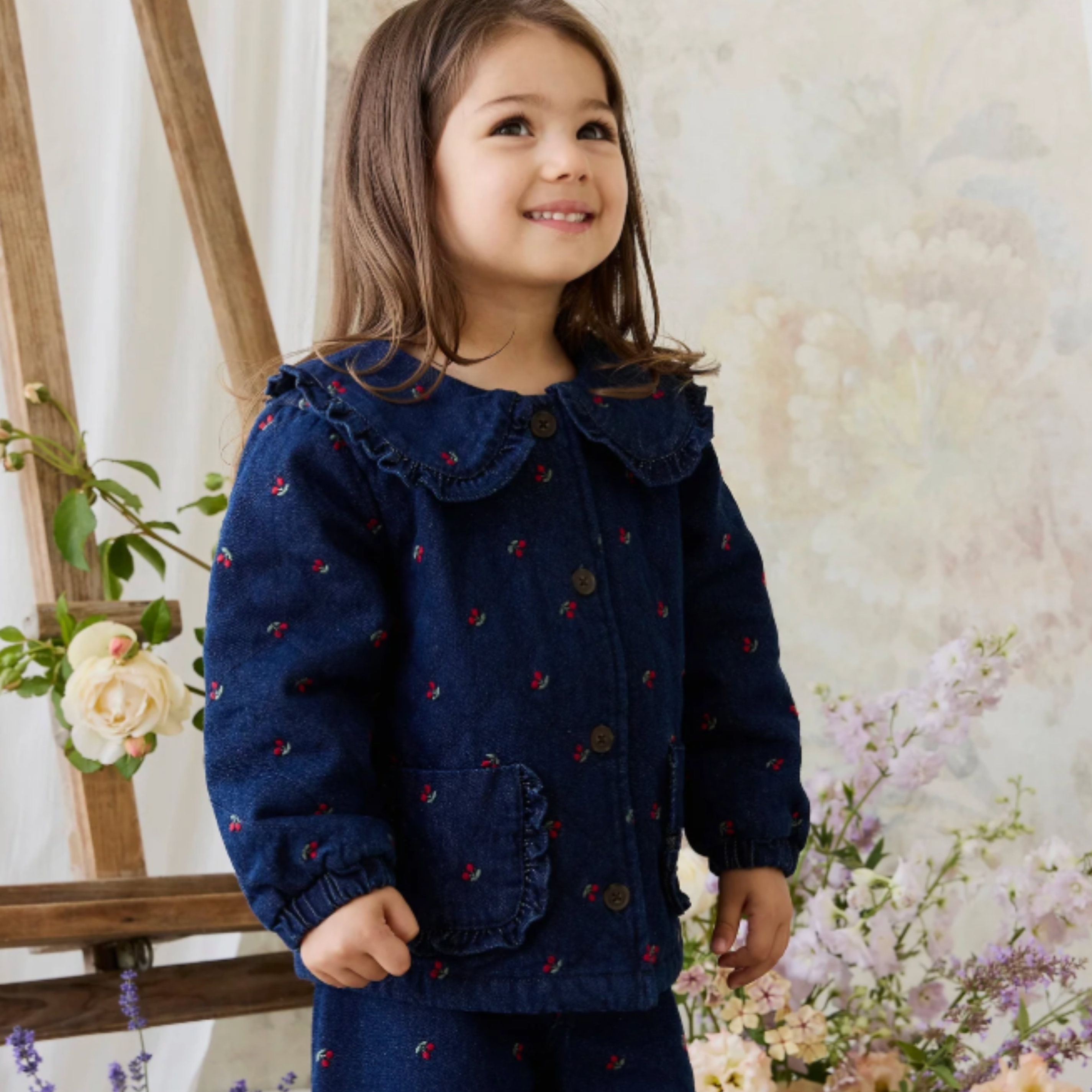 Bring a sweet, vintage-inspired charm to your little one’s wardrobe with our Amandine Jacket in Cerise Denim. Featuring a classic silhouette adorned with delicate cherry motifs, this piece is perfect for layering and adding a touch of whimsy to any outfit.