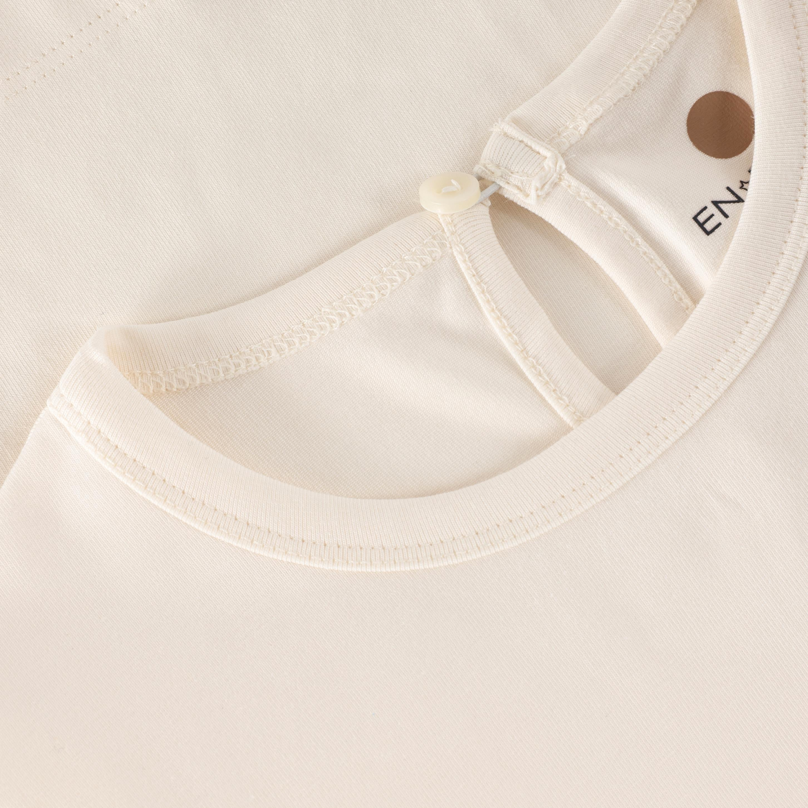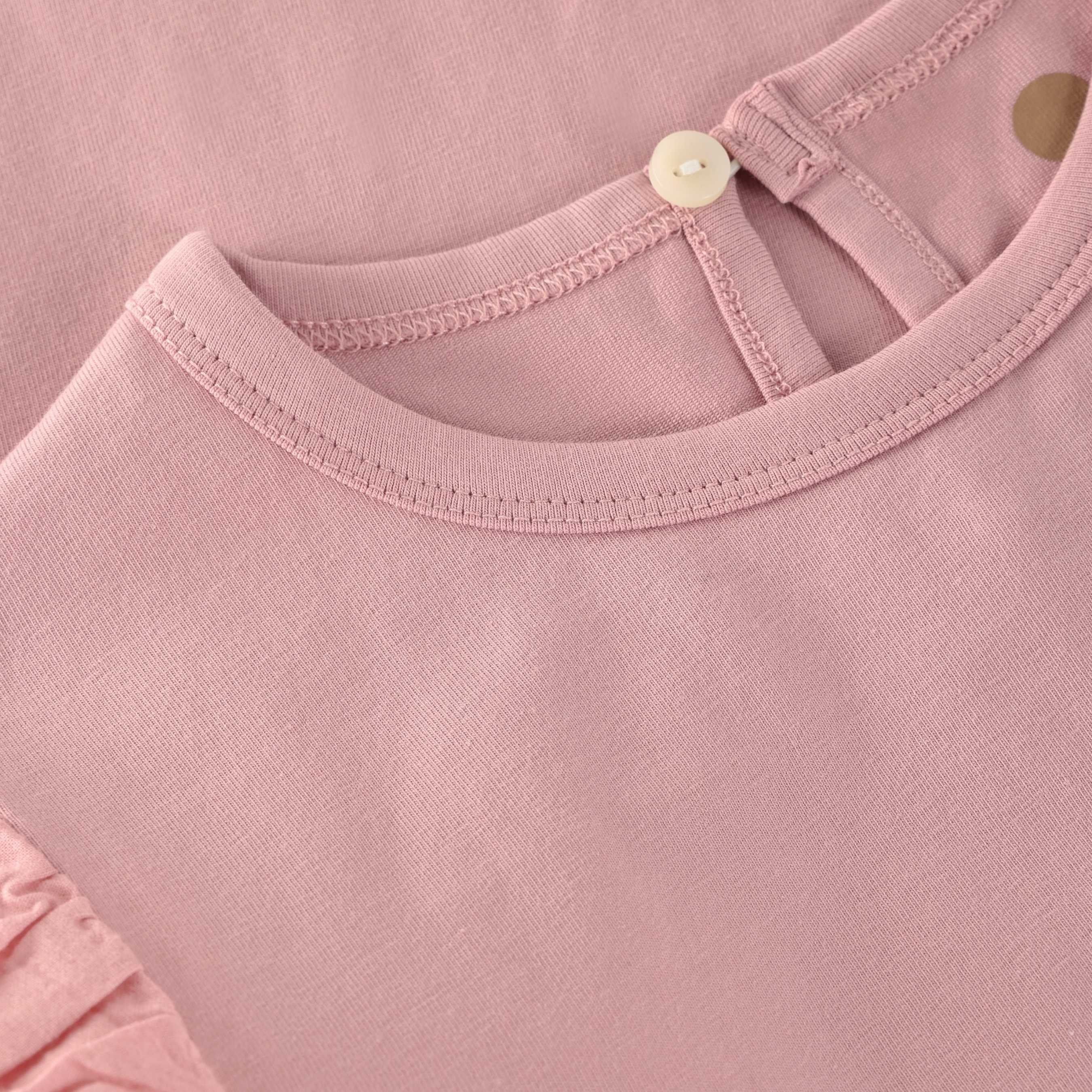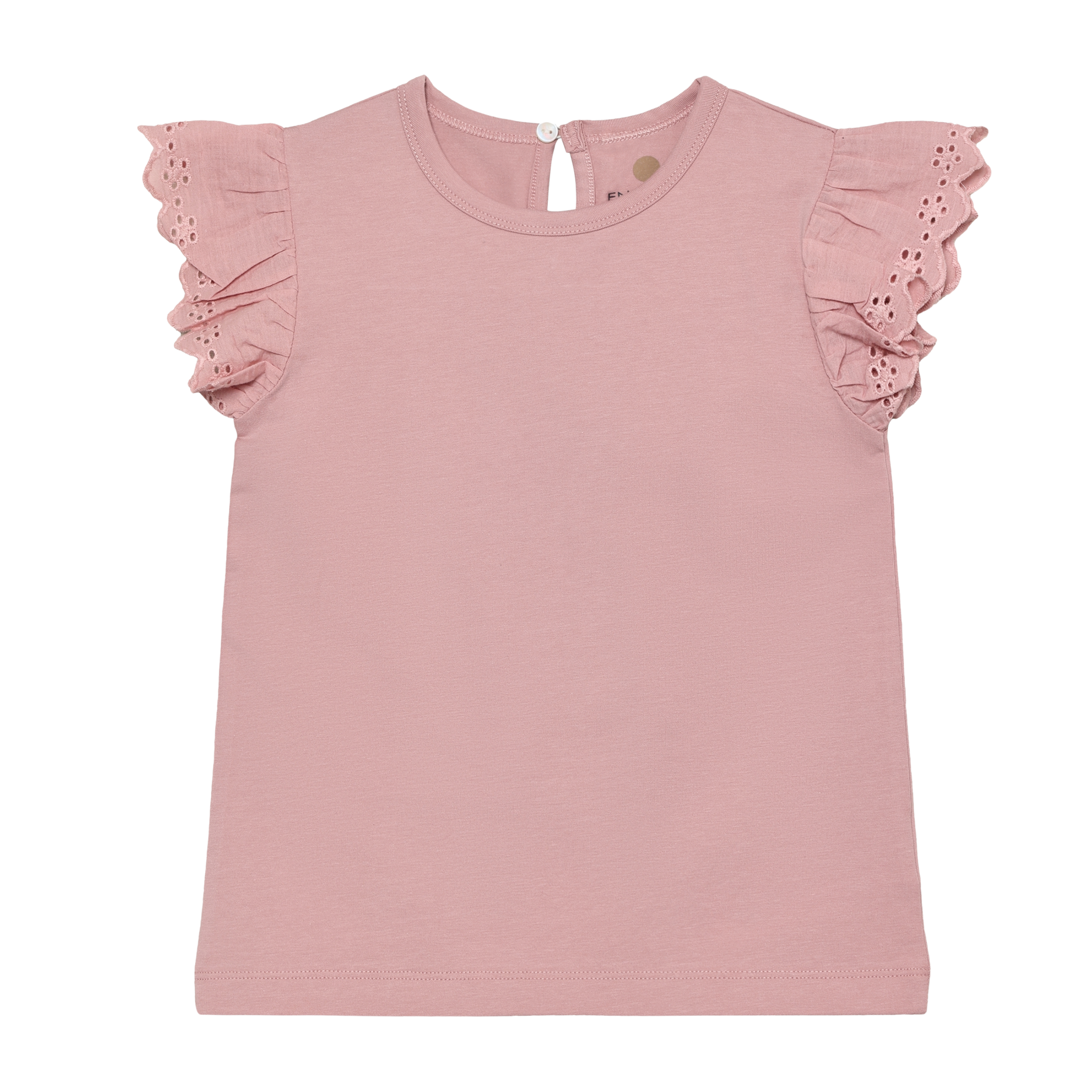 Soft and sweet, this girls' t-shirt features delicate ruffle sleeves trimmed with charming eyelette details. Crafted from 100% cotton, it's breathable and comfortable for warm weather play. Available in timeless Oat and pretty pink, this versatile top pairs effortlessly with any outfit in her wardrobe.