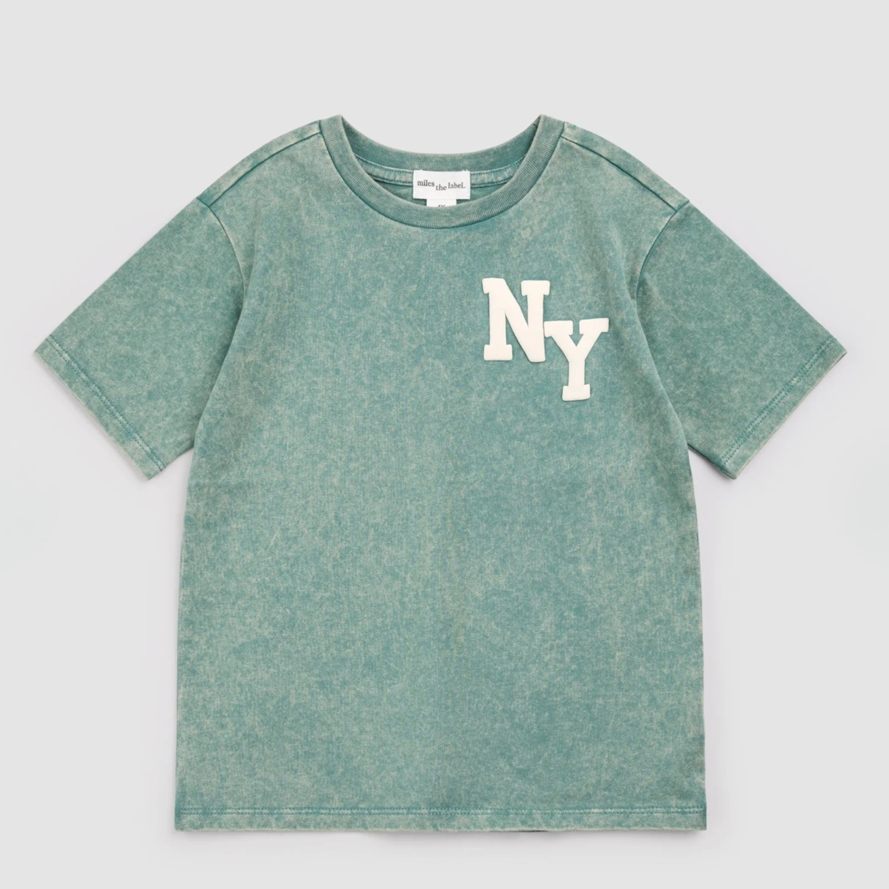 Mini trendsetters will love this acid wash tee, complete with NY puff print. The stylish finish adds a cool yet casual style to his everyday wardrobe, looking just as good with shorts, joggers or jeans. Made from organically grown cotton jersey, it’s soft and breathable – perfect for transitioning from the colder seasons to the warm.