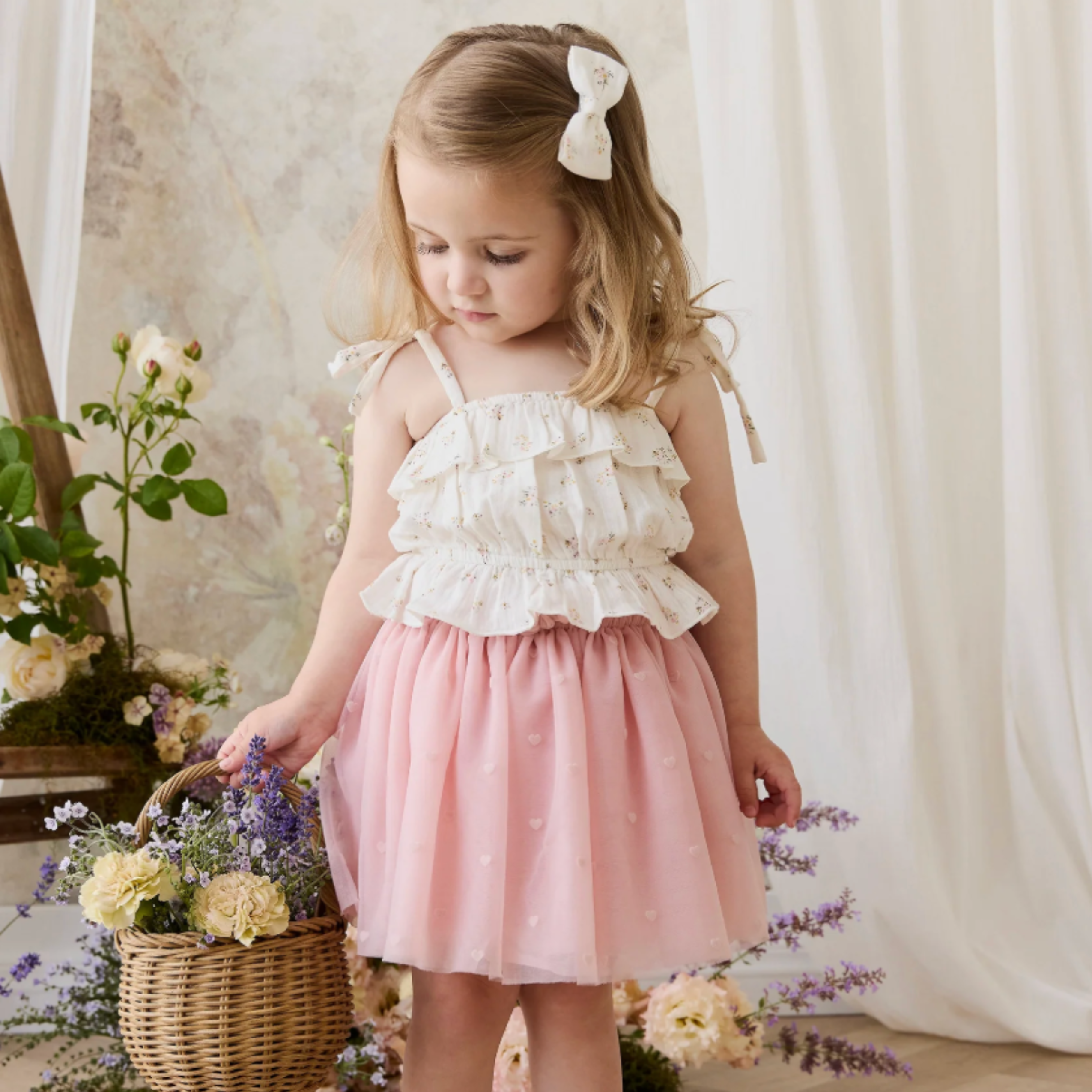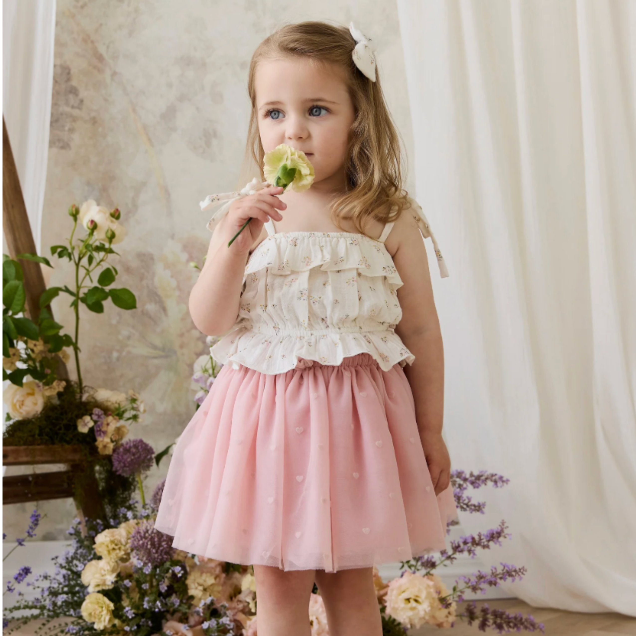 Add a touch of dreamy elegance to your little one’s wardrobe with our Lottie Skirt in Petite Heart Carnation. Featuring a floaty silhouette and delicate heart motifs, this piece is perfect for special occasions or creating a whimsical everyday look.