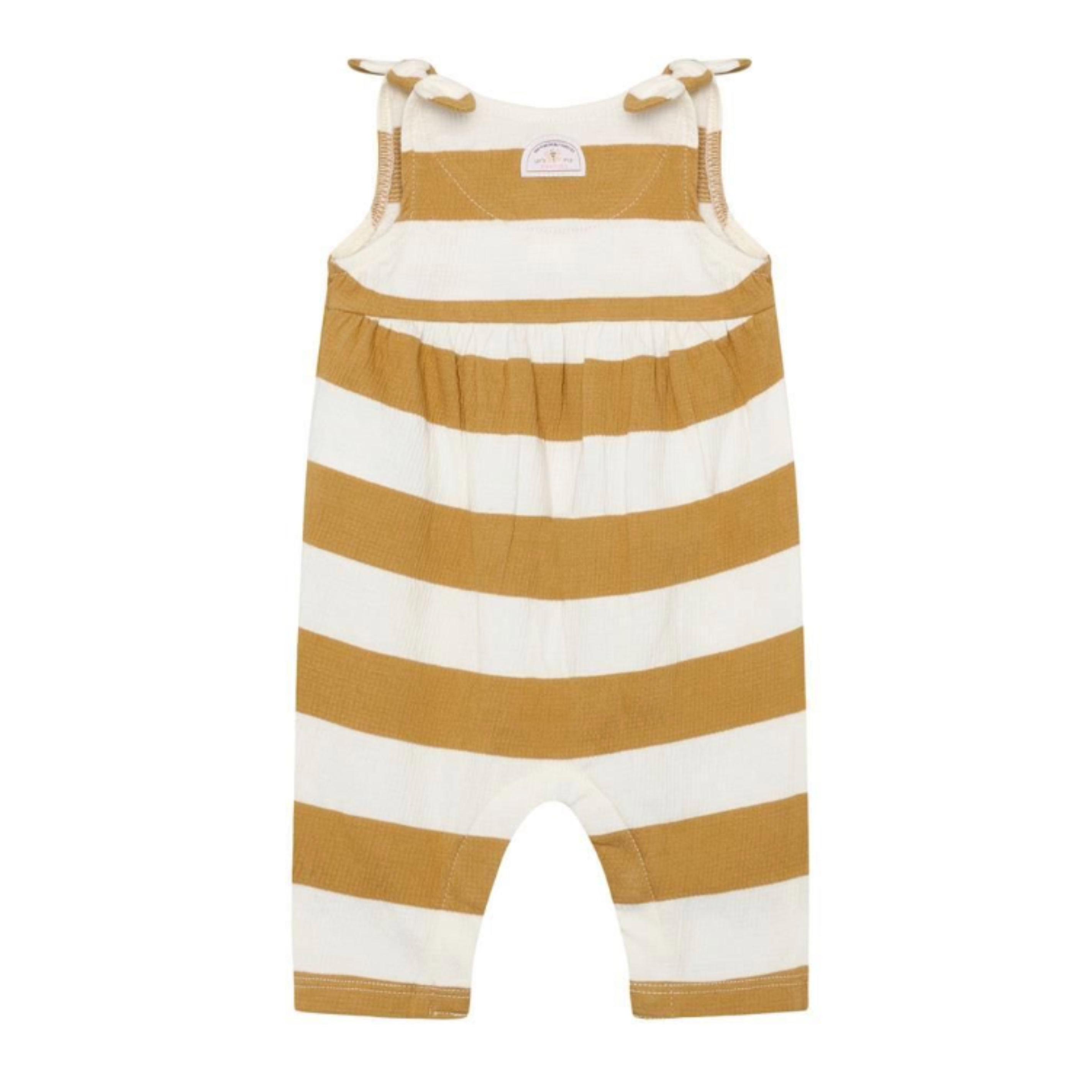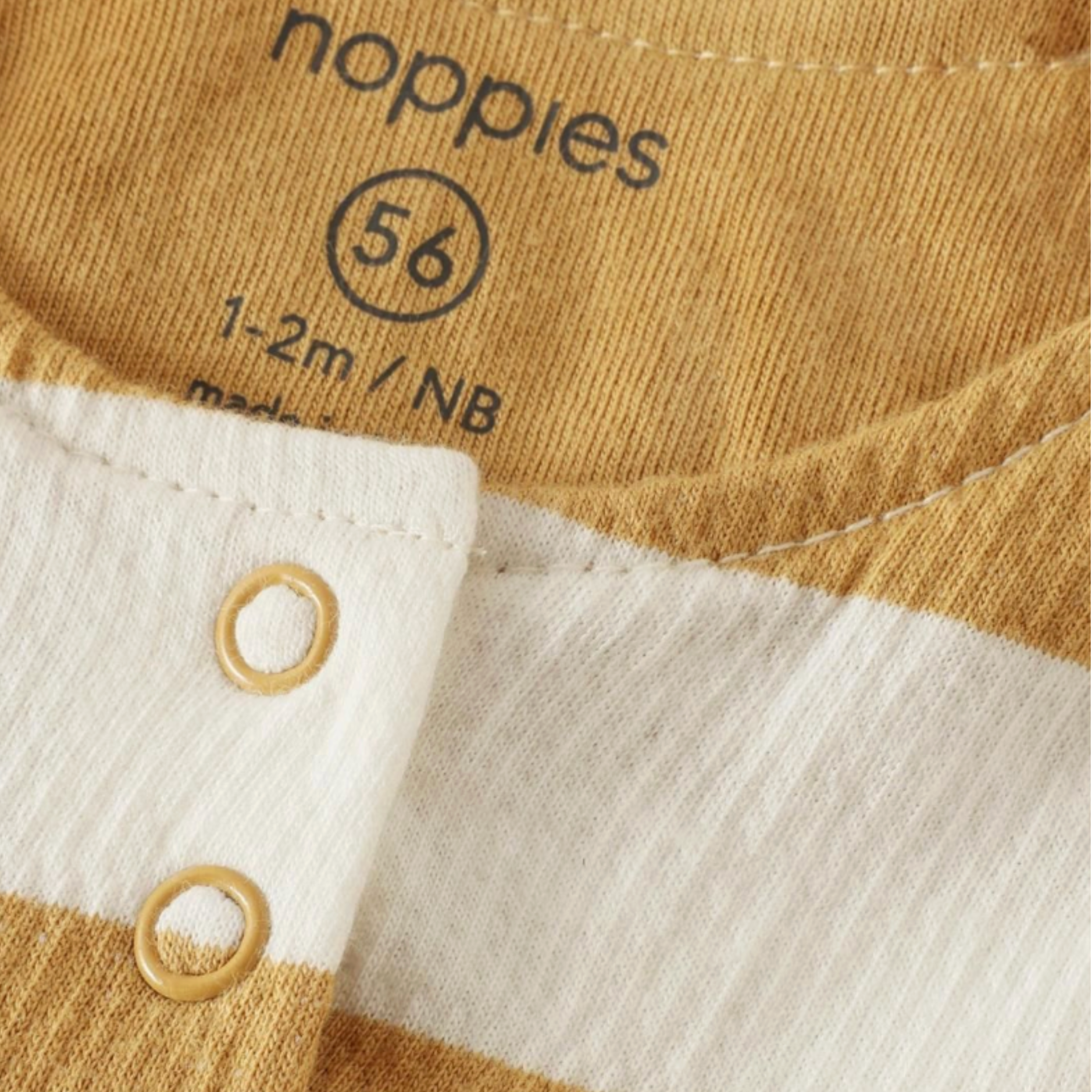 This sleeveless jumpsuit for baby girls from Noppies Baby is the perfect summer essential. Made from striped crinkle jersey, it’s light, breathable and ultra-comfy. The relaxed fit gives her plenty of room to move, and it’s GOTS-certified (CERES-0366) for peace of mind. The snap closure at the crotch makes diaper changes easy, and the round neckline adds a timeless look. The stripe design brings a fresh, sunny vibe. Ideal for warm days at home, on the go, or on holiday.