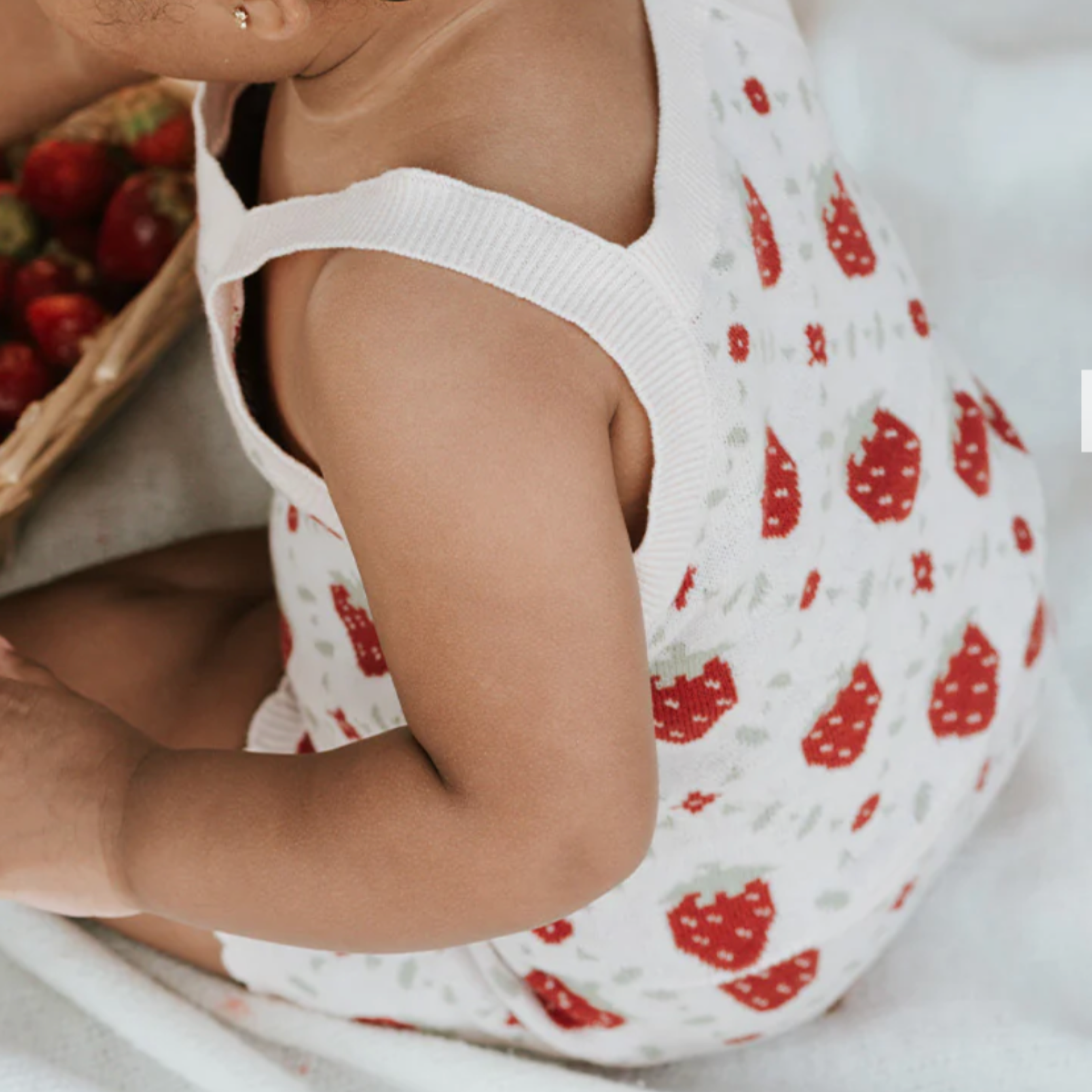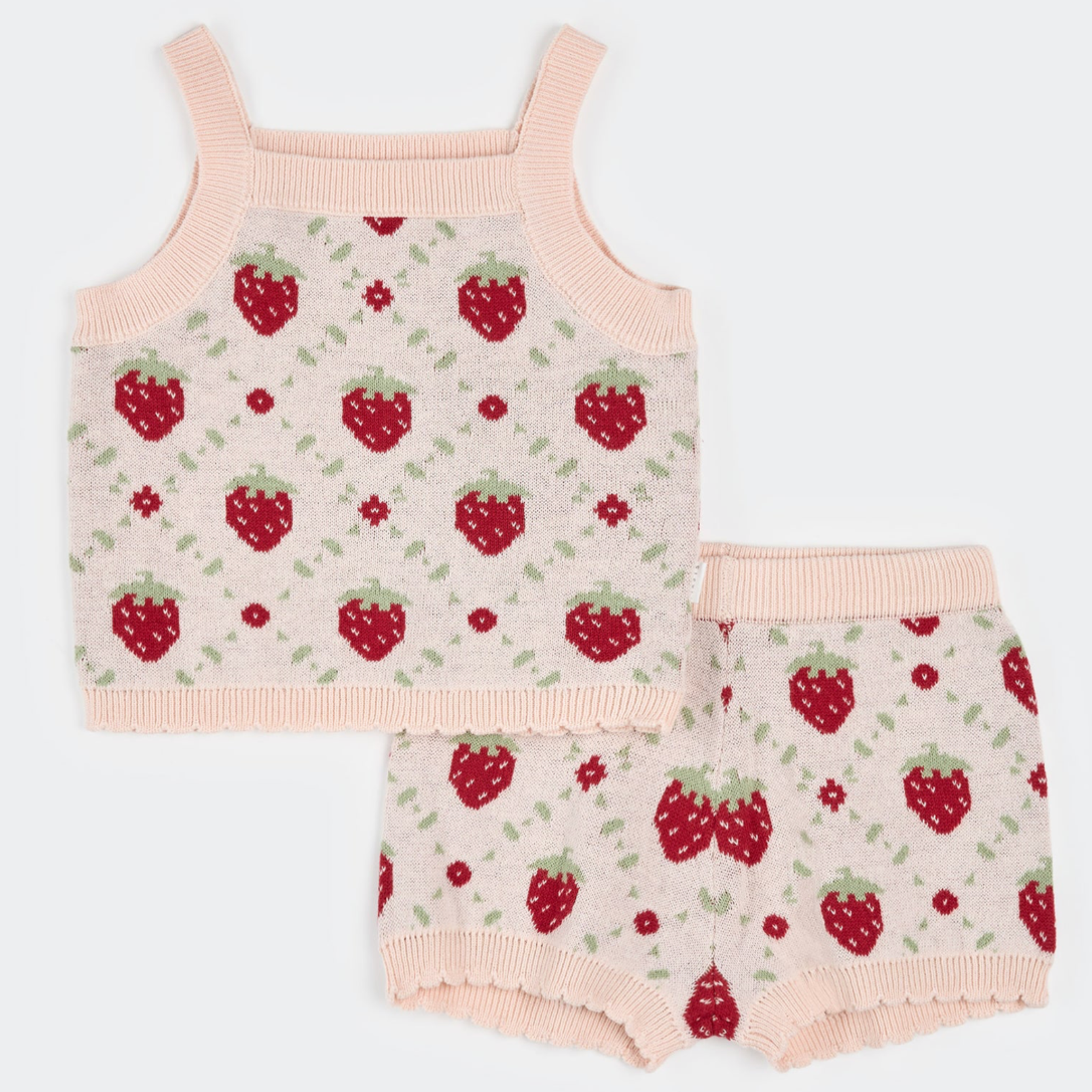 Soft, light and breezy, this Strawberry knit set includes a top with crossover straps and coordinating shorts. The crochet pieces are perfect for warm-weather adventures, whether you’re on vacation or heading to the local pool. Scalloped edges along both the top and shorts provide a sweet finish you’ll both adore.