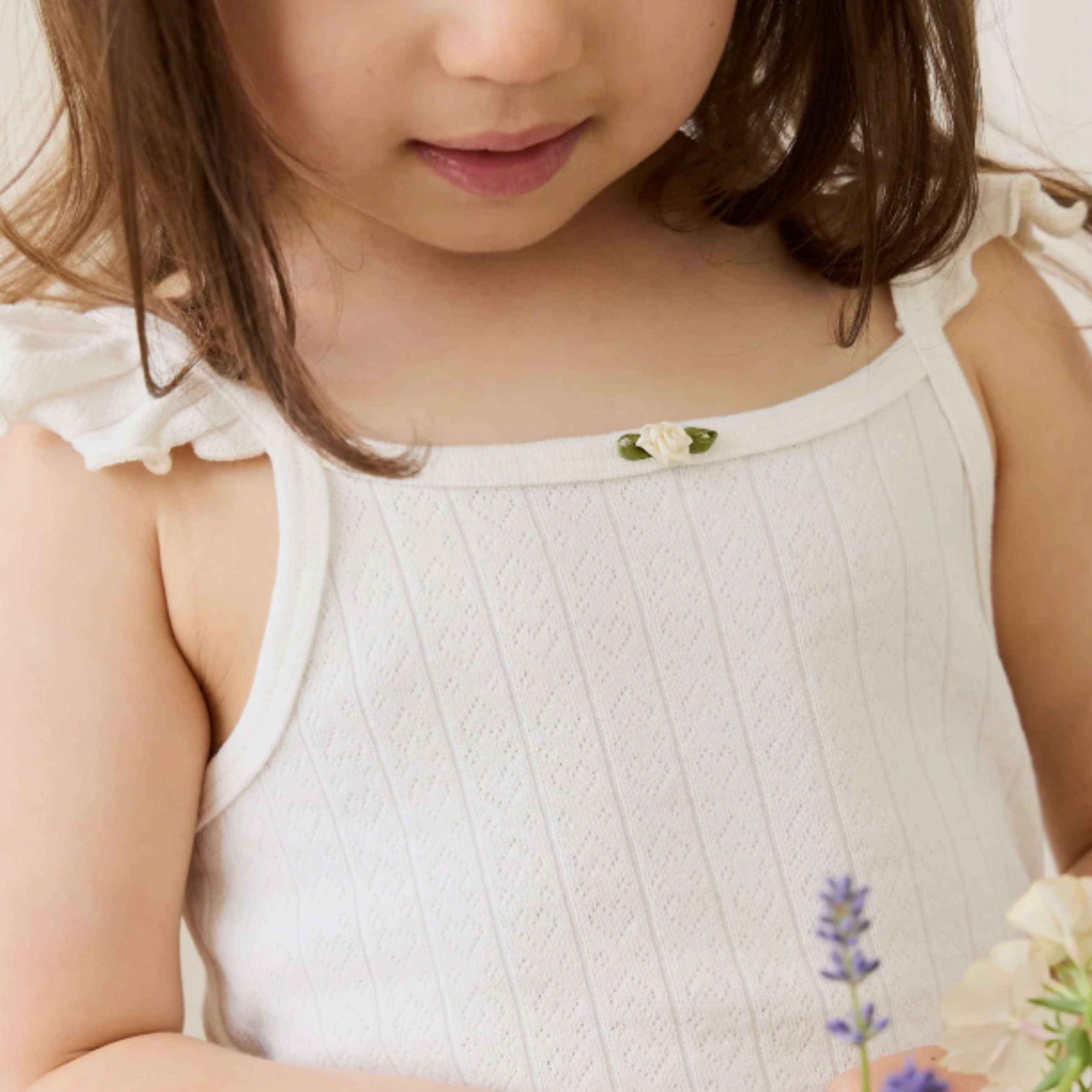 Organic Cotton Josephine Singlet - Sweet Heart Pointelle Parchment